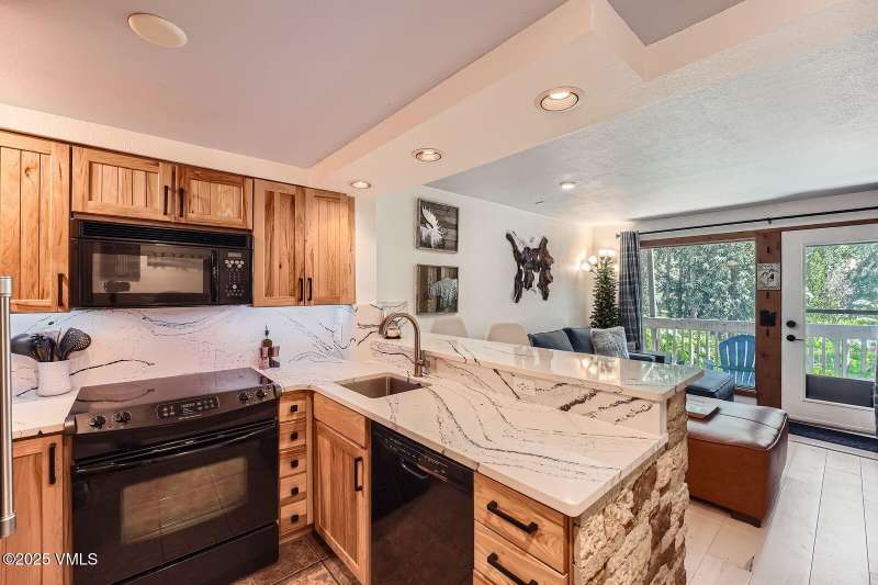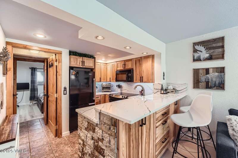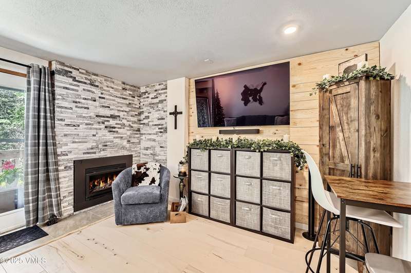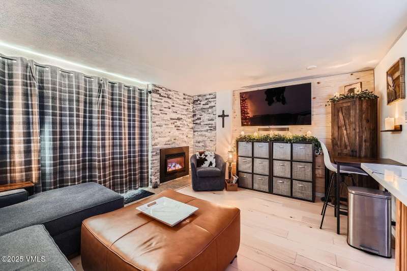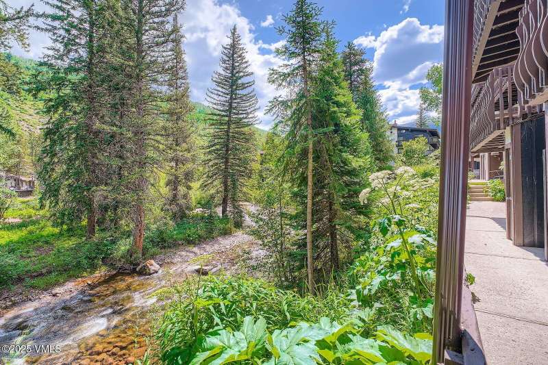 Welcome to Your Creekside Mountain Oasis. Tucked along the tranquil banks of Gore Creek, this beautifully updated one-bedroom, two-bathroom residence is the perfect mountain retreat. Whether you're relaxing in the cozy living room or unwinding on the private patio, the soothing sounds of the river create a peaceful, rejuvenating ambiance. Thoughtfully renovated, the home features a modern kitchen, a Cambria Portrush full thickness quartz countertop bar for casual dining, a warm dry-stacked stone floor-to-ceiling fireplace, custom wood accent wall, wide plank maple floors and radiant heated tile floors. Ample storage throughout ensures practicality without sacrificing style. This home is being offered partially furnished. Located in the amenity-rich Vail Racquet Club, residents and guests enjoy tennis and pickleball courts, a year-round pool, hot tubs, sauna, steam room, and a fully equipped fitness center offering complimentary classes. Additional perks include concierge service and rental property management service, the Apres Cafe Bar & Restaurant, access to 8 ChargePoint EV charging stations and secured indoor bike storage. With the free Town of Vail shuttle just steps away, getting to Vail Village is effortless. This Vail Racquet Club gem is a must-see mountain escape!