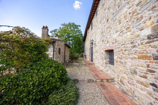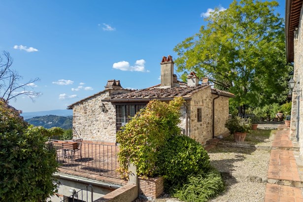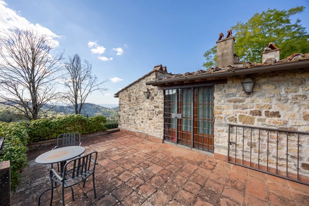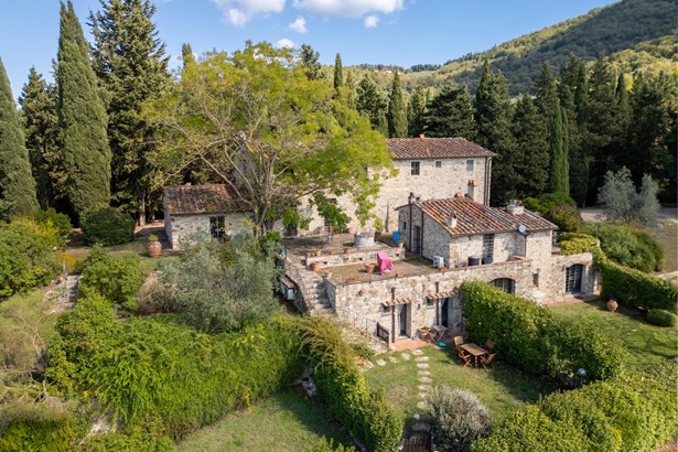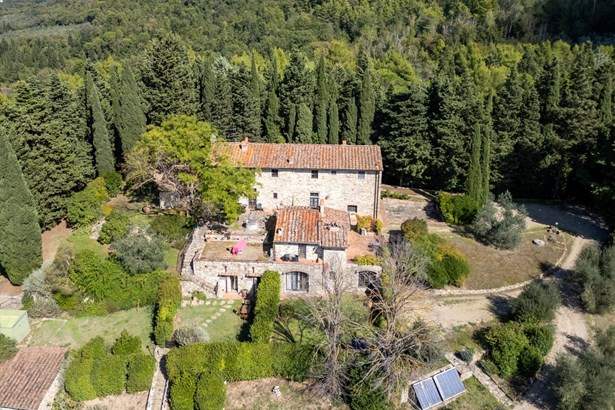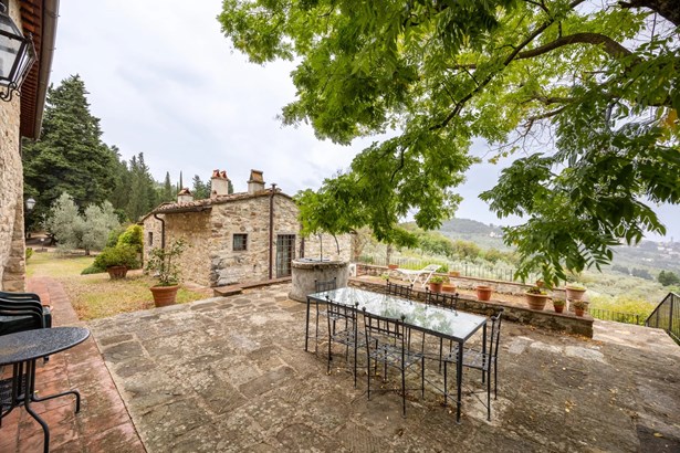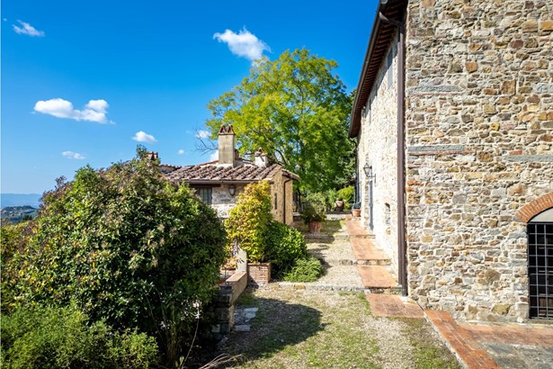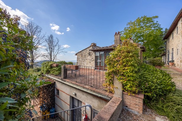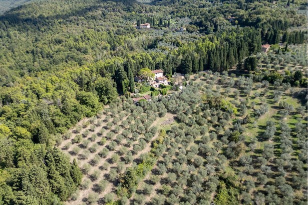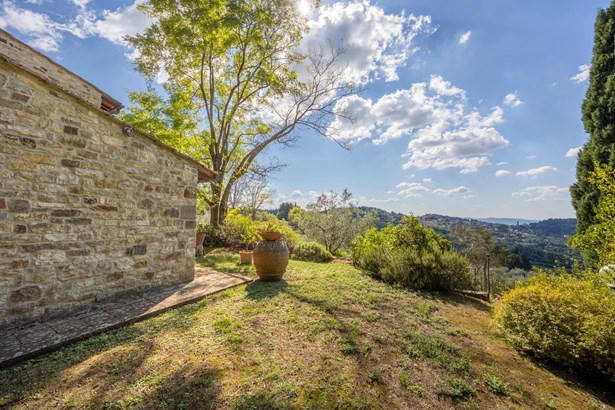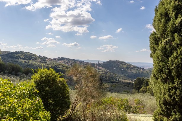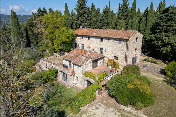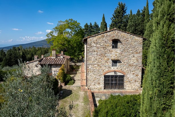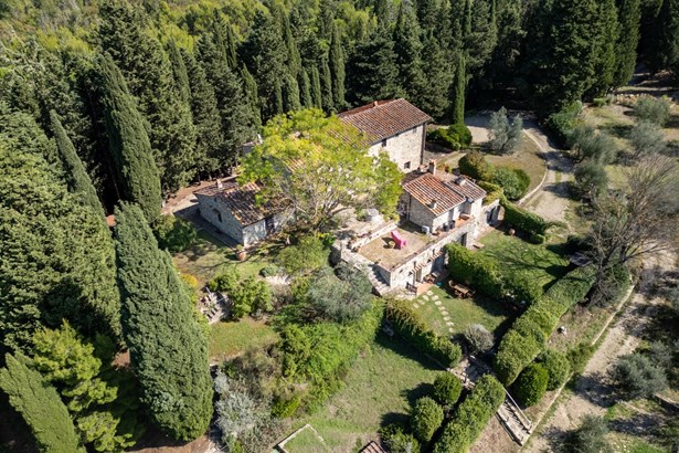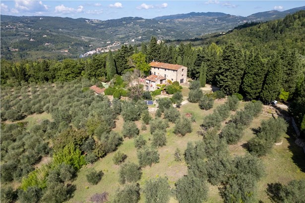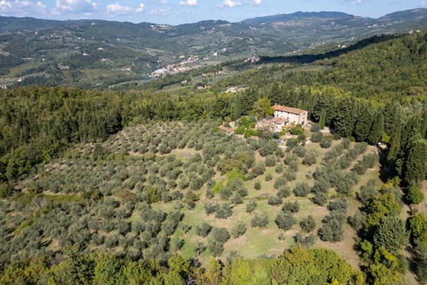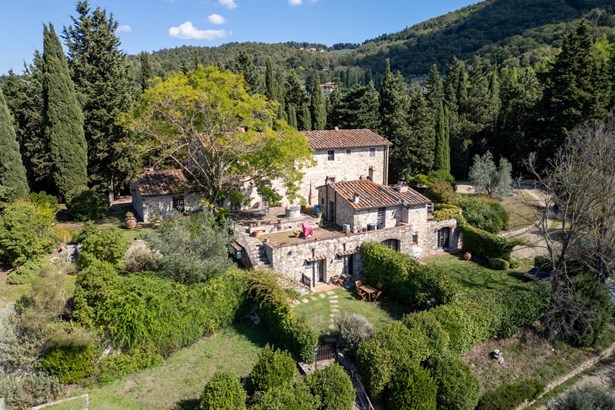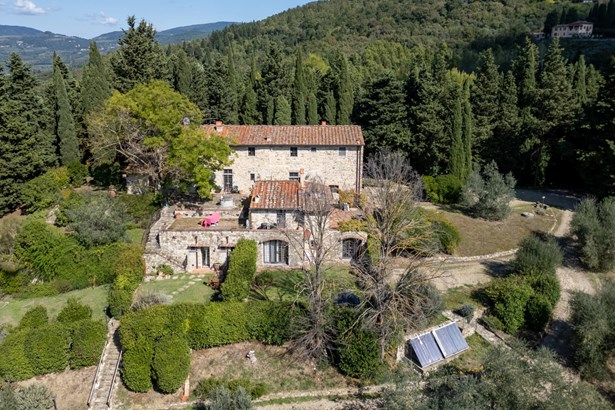 Just 2.5 km from Fiesole’s historic Piazza Mino, in a setting of extraordinary peace and privacy, we are pleased to offer for sale a splendid property surrounded by greenery and immersed in approximately 7,000 sqm of land cultivated with olive trees. A convenient driveway leads to the heart of the estate, opening onto enchanting views of Florence and its unparalleled monumental heritage.The residence embodies the charm and elegance of a traditional Tuscan farmhouse, with exposed stone walls, wooden beams, and coffered ceilings. Renovated a few years ago and carefully maintained, it preserves the authentic character of country homes while offering modern comfort and functionality. Here, one can enjoy a lifestyle in harmony with nature without giving up proximity to the center of Fiesole and the city of Florence.The property consists of a farmhouse divided into two independent residential units and a delightful converted barn, as well as a garage, two storage rooms, and utility areas. Each unit is completed by wide panoramic terraces and private gardens, making the living experience truly unique and captivating.Internal layout:Main portion of the farmhouse: entrance with kitchen and dining area, large living room with three exposures, additional living room with fireplace, guest bathroom, and cellar. On the upper floor, three spacious double bedrooms, two bathrooms, and hallways.Front portion of the farmhouse: kitchen with dining area, double living room with a striking mezzanine, two bedrooms upstairs, and two bathrooms.Barn: living room with kitchenette and bathroom on the ground floor; on the lower level, a bedroom with bathroom and access to a front garden. Adjacent garage with direct access.This residence represents a rare opportunity: ideal as a home for a large family or multiple households, and equally perfect as an investment—living in one part while renting out the others as high-end accommodations.The surrounding landscape is of extraordinary beauty: the panoramic terraces offer breathtaking views over the Tuscan countryside and the city, gifting unique emotions day after day.A precious place, combining the privilege of countryside living just minutes from Fiesole and Florence, immersed in history, nature, and the authentic beauty of Tuscany.