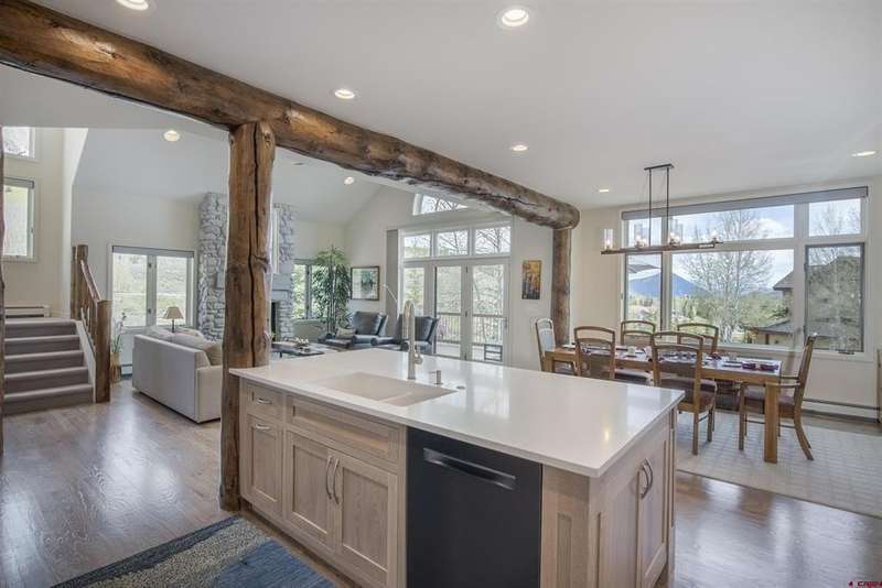 Margaret Dethloff, Bluebird Real Estate, LLC, C: 970-209-7880, maggie@bbre1.com, www.CrestedButteNow.com: Welcome to 22 Links Lane, situated in the highly sought-after Skyland Subdivision of Crested Butte. Transformed by the current owners, the full unit renovation, is the perfect blend of contemporary décor and modern updates with a touch of mountain magic. This spacious, fully furnished unit boasts 3 bedrooms and 4 bathrooms, and is complete with all the modern amenities you desire. Perched high within the complex, it provides breathtaking views of the surrounding mountains. As you step inside, you're welcomed by a spacious entryway, setting a warm and inviting tone. The lower level presents a versatile bonus room and full bath, ideal for a game room or office. Ascend the stairs to be greeted by vaulted ceilings and an airy living space, radiating with the coziness of rich log beam accents and a floor to ceiling fireplace. The stunning kitchen is perfect for both cooking and hosting guests. Step out onto the expansive deck from this level and immerse yourself in the refreshing mountain breeze! On this level, discover a bedroom and full bath complete with a privacy door, ensuring complete privacy for anyone occupying this space from the living area. Ascending the stairs, you'll encounter another ensuite guest bedroom, along with the stunning and spacious primary suite, boasting a walk-in closet for added convenience. Located within the vicinity is The Club at Crested Butte, featuring a Robert Trent Jones II golf course accessible to the public. Residents can indulge in fishing, boating, and stand-up paddleboarding on the Slate River, with access to Grant Lake for non-motorized boats, along with the ideal spot for gatherings at the "party pavilion." Throughout the winter, Skyland homeowners have access to groomed cross-country trails. Create your ideal home in this tranquil environment and relish in all that the mountains have to offer.