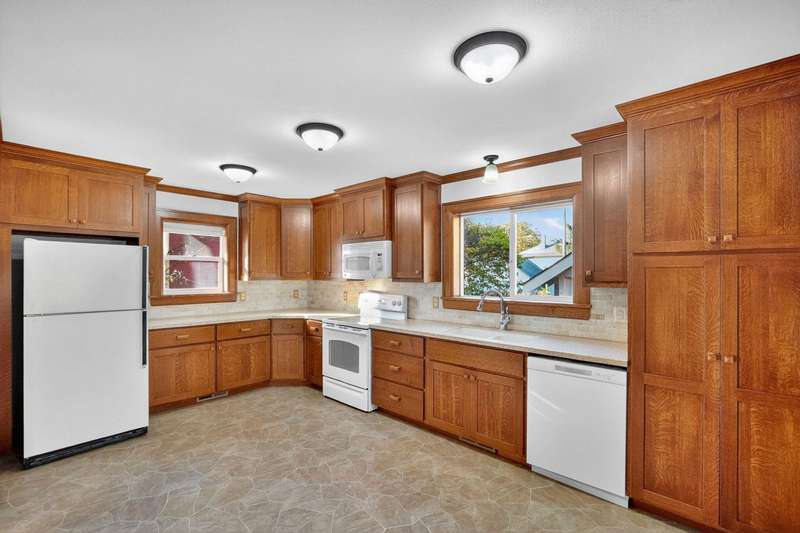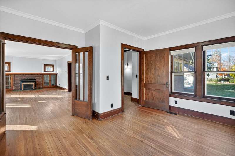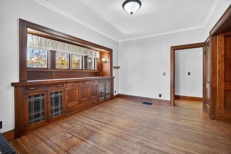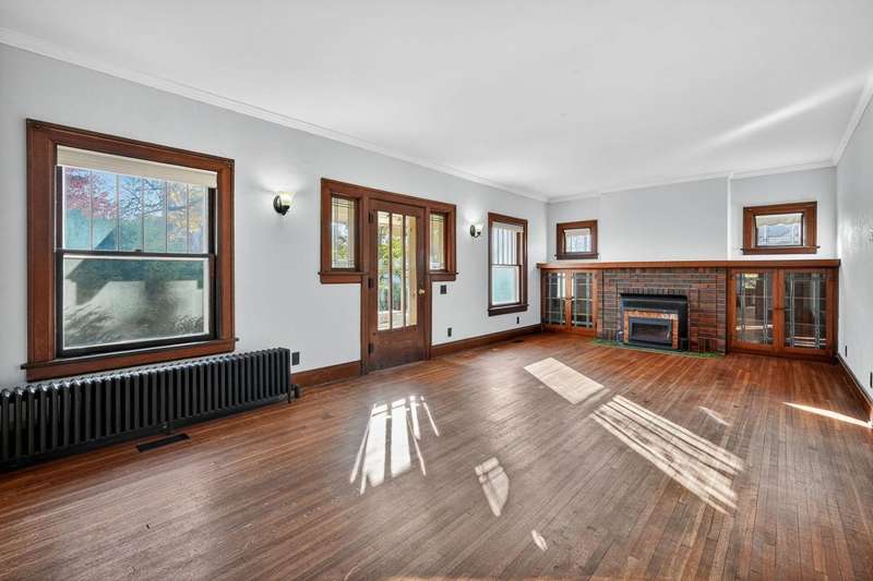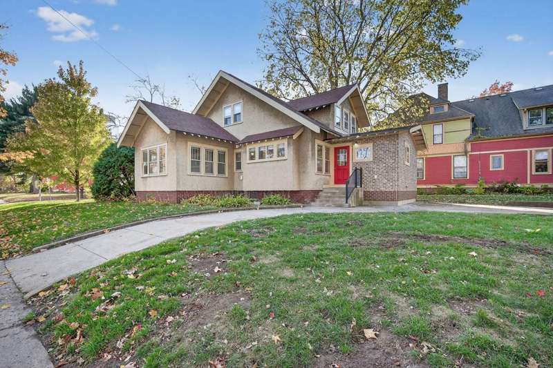 They don't make them like this anymore! Lovingly cared for through the years, this 1916 Craftsman home sits just blocks from downtown, parks, and restaurants. The spacious kitchen features quarter-sawn oak cabinets, solid-surface countertops, and soft-close drawers. Formal dining room with built-in buffet and leaded-glass windows. Large living room with crown molding, original built-ins, and a cozy brick fireplace with tiled hearth. Main-floor bedroom, butler's pantry, and bright 4-season room. Upstairs offers three bedrooms and a half bath. Updated electrical, central air, and a basement with high ceilings and workshop potential. Tree-lined corner lot with a detached two-car garage. A rare blend of history, charm, and location makes this a home you'll be proud to call your own.