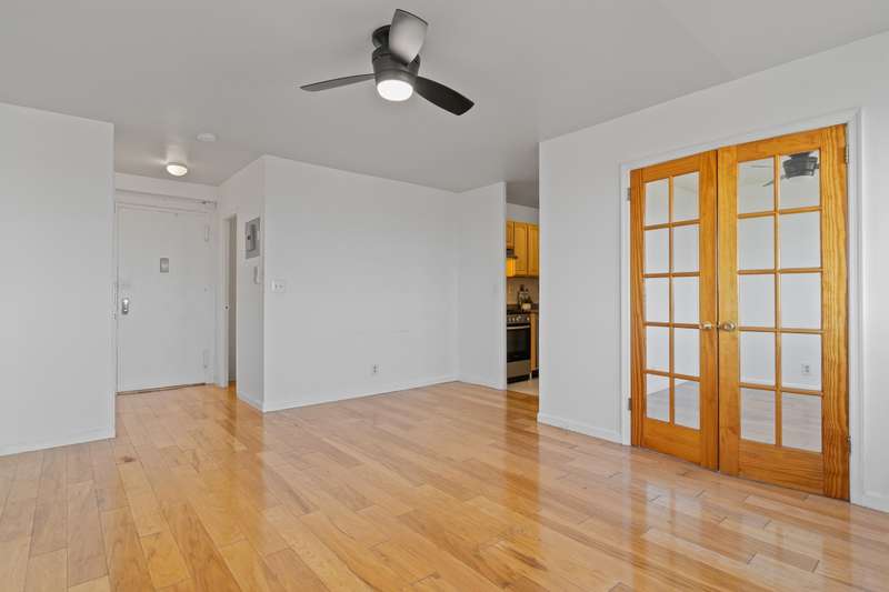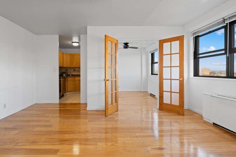 Freshly painted, move-in ready one-bedroom condo, offering breathtaking east-facing views of New York City through expansive windows. The layout features a spacious living room with a designated dining area, a kitchen with modern stainless steel appliances including a Bosch dishwasher, and hardwood floors throughout. A custom built-in closet is located in the hallway, and multiple additional closets throughout the unit provide excellent storage. The low HOA fee includes all utilities, assigned parking, pool access, and on-site superintendent and staff for added convenience. Located near a variety of local shops, restaurants, and major retailers like Costco and Lidl. Bayonne ??s 100-acre waterfront park is just minutes away, offering stunning sunset views, walking trails, outdoor fitness stations, tennis courts, basketball courts, and a running track. Commuting to New York City or Jersey City is easy with access to the light rail, express bus service around the corner, and a quick 15-minute drive to the Holland Tunnel. Schedule your showing today!