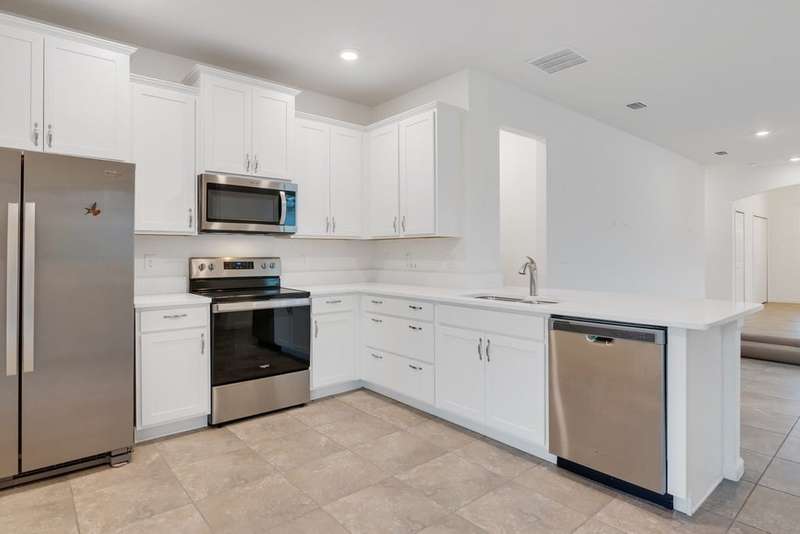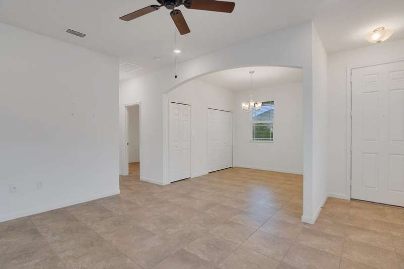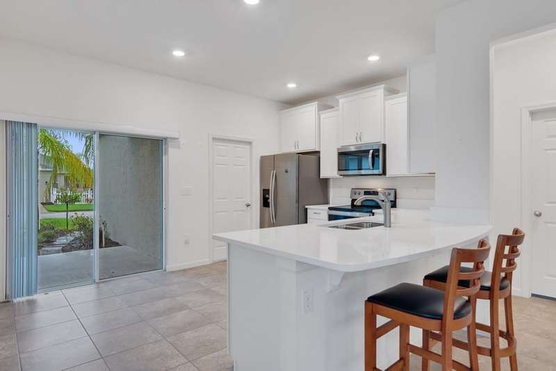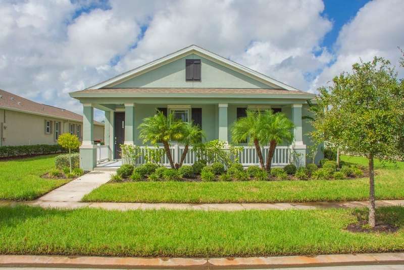 Dream Cottage in Pointe West East Village. Delightful front porch inspires a casual Florida Lifestyle. Great Room Concept Kitchen has quartz countertops, peninsula eating area, and stainless steel appliances. Patio off kitchen for lounging or grilling. Split bedroom plan. Primary suite has walk in closet, primary bath has double sinks and walk in shower. 2020 Build has upgraded insulation meaning lower power bills. Community pool. Pointe West Country Club has membership opportunities 1/2 mile away. Sizes are approx/subj to error.