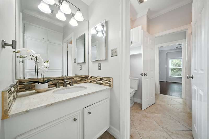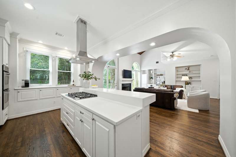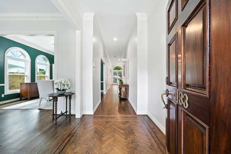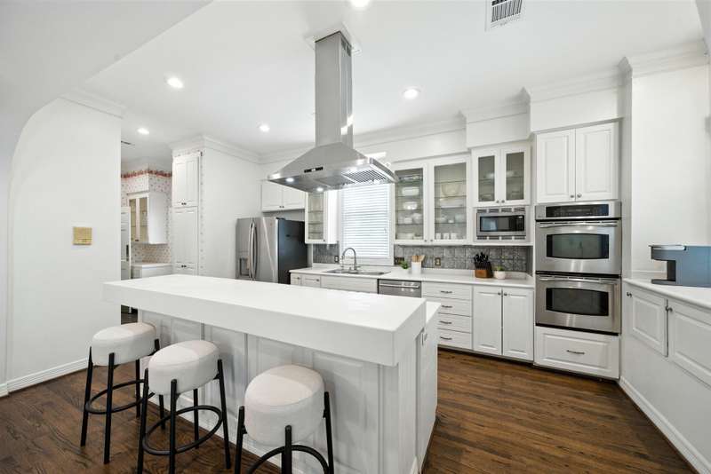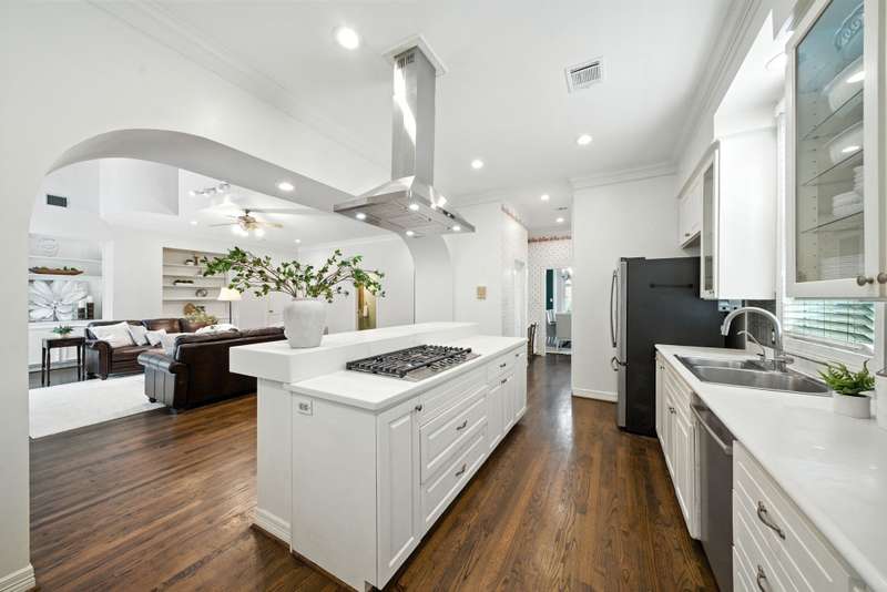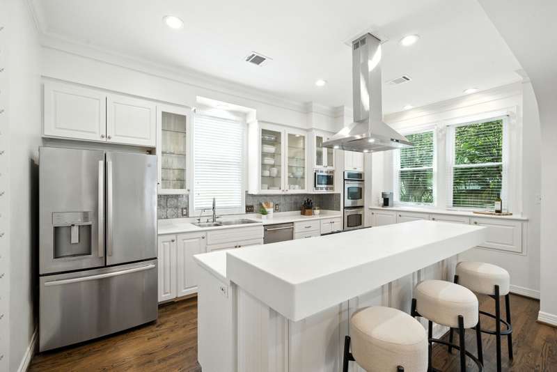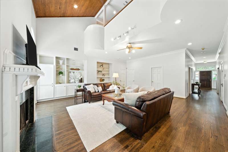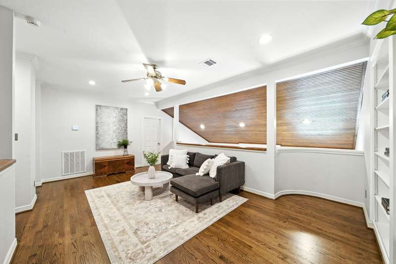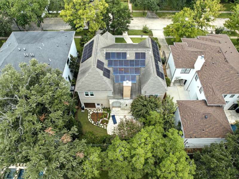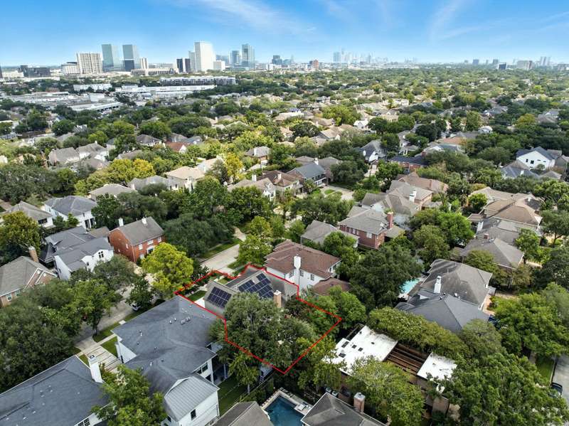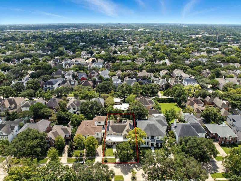 Located in West University, this home combines timeless design with modern efficiency. The entry welcomes you with herringbone-pattern inlay wood floors that flow throughout the first level. Crown molding throughout. Open ceilings highlight the spacious living room, while the chef’s kitchen boasts ss appliances, double ovens, and a new gas range (25). The first floor primary suite ensures comfort and privacy, upstairs you’ll find three bedrooms and a spacious flex space, perfect for a library, media room, or guest suite. The sizable utility room offers built-in storage and sink for added convenience. Recent updates include 48 solar panels with two Tesla batteries providing 26.5 kW (24), double-paned Low-E windows (22), tankless water heater (24) and reverse osmosis filtration. This home blends energy efficiency, thoughtful updates, and elegant details for exceptional living in a prime location. Zoned to West U Elementary (Buyer to verify eligibility and attendance). Per Seller