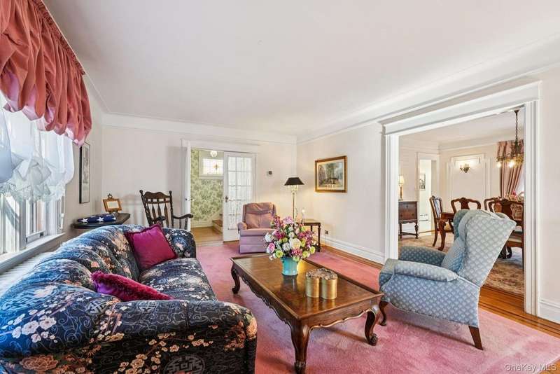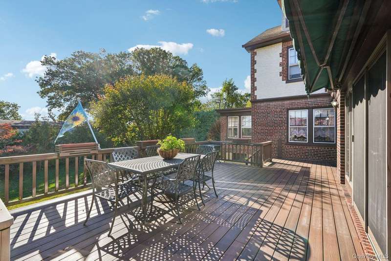 Located in the desirable Mohegan Heights section of Yonkers, this lovely brick and stucco Tudor blends timeless character with classic architectural details. A welcoming entry foyer with a leaded glass window sets the tone for this beautifully maintained home. Inside, you'll find gleaming inlaid hardwood floors, elegant picture moldings, and abundant natural light throughout.The formal living room features a stately fireplace and opens to a bright sunroom, perfect for relaxing or entertaining. The formal dining room is enhanced with decorative molding and wall sconces, while the kitchen offers recessed lighting, a skylit breakfast nook, and a door leading to the deck for easy indoor-outdoor living. A spacious family room showcases a second fireplace, a stunning Palladian window, and French doors that open to the deck?ideal for gatherings and quiet evenings alike.Upstairs, the second floor offers two generous bedrooms, a third bedroom currently used as an office, and a full bathroom. The finished third floor provides additional versatile space and another full bath?perfect for guests, a playroom, or a private retreat.The oversized yard is beautifully landscaped with mature plantings, offering plenty of space to relax, garden, or entertain outdoors. A one-car garage completes this charming home.Centrally located and a quick walk to the Metro North Train. Experience warmth, character, and comfort in one of Yonkers' most sought-after neighborhoods?welcome home to Mohegan Heights!Taxes are being grieved!!