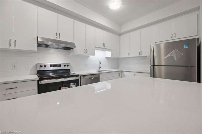 BRAND NEW ENERGY STAR® CERTIFIED STACKED TOWNHOMES NEAR SUNRISE SHOPPING CENTRE! FLEXIBLE MOVE-IN DATES! SECURE YOUR FAVOURITE UNIT TODAY AND MOVE IN ANYTIME NOW THROUGH JANUARY. PARKING INCLUDED. ENJOY QUICK ACCESS TO HIGHWAYS 7/8. Welcome to THE HURON— a lower level suite with 3 bedroom, 2 full bathrooms, high ceilings, full-size windows, and a bright open concept layout. The kitchen features sleek quartz countertops, subway tile backsplash, full-size stainless steel appliances, and an oversized island with plenty of storage, counter space, and breakfast bar seating. The master bedroom features a private ensuite with a glass-enclosed walk-in shower and a large walk-in closet. Enjoy two private outdoor spaces- a terrace out front and a cozy patio off the master bedroom overlooking the beautiful pond and countryside. Enjoy the convenience of in-suite laundry, and central air conditioning and heat for year round comfort. This family friendly community offers a brand new playground, basketball court, and scenic forested trails — perfect for staying active or simply enjoying the outdoors with your family. Sunrise Shopping Centre is minutes away giving you quick access to everything you need - Walmart, Old Navy, Shoppers Drug Mart, Winners, Starbucks, Canadian Tire, Dollarama, and more. Tenants receive exclusive discounts on Rogers TV and internet services. We are pet-friendly. Utilities are separate. Landlord is responsible for furnace filter replacements and water softener maintenance. Actual unit may vary in layout; interior finishes are consistent. Some photos may be virtually staged. Great selection of 2 & 3 bedroom suites available. Connect with our leasing team for more information.
