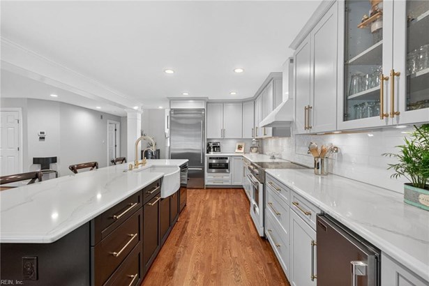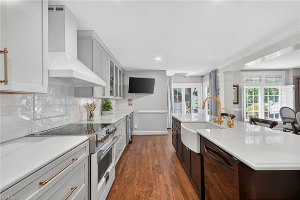 Welcome to Burwell’s Green in Kingsmill, where timeless design meets modern sophistication. This 3-bedroom, 3.5-bath townhome underwent a meticulous 4-year renovation with Level 10 finishes and professional-grade appliances. The open-concept layout flows across hardwood floors into a chef’s kitchen with quartz counters, custom cabinetry, and premium appliances. A family room features vaulted ceilings, built-ins, and a gas fireplace, while a sunlit sitting room overlooks golf course views. Both 1st and 2nd-floor primary suites are offered, with a luxurious primary bath boasting a steam shower, marble finishes, and a custom walk-in closet. Enjoy morning coffee in the private courtyard or sunroom overlooking The Plantation Course’s 14th green. Life in Kingsmill includes 3 clubhouses with pools, courts, playgrounds, 7+ miles of trails, ponds for kayaking/fishing, and a private James River beach. The optional Club Experience adds golf, spa, fitness, and fine dining.