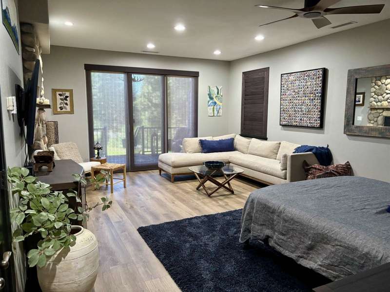 Known as the Bailey Creek Cottages, this 2,361 sq. ft. home is ideally situated on the Bailey Creek Championship Golf Course. Completely refurbished throughout, this property showcases a brand-new kitchen with granite countertops and all new cabinetry, along with beautifully designed bathrooms featuring custom tile work, walk-in showers, and soaking tubs. The home is tastefully decorated with attention to detail and offers multiple private decks to take in the stunning views of the golf course and clubhouse. A unique floor plan allows three bedrooms to be locked off, creating the option of a Triplex for flexible rental opportunities. The 1,154 sq. ft. garage has been thoughtfully converted into an expansive entertainment center, complete with a wet bar, custom cabinetry, granite counters, pool table, and a huge screen TV with surround sound and separate furnace and AC --perfect for gathering with friends and family. Located just steps from the first tee and clubhouse, and only minutes to beautiful Lake Almanor, youll enjoy world-class fishing, boating, and summer water sports right at your doorstep.