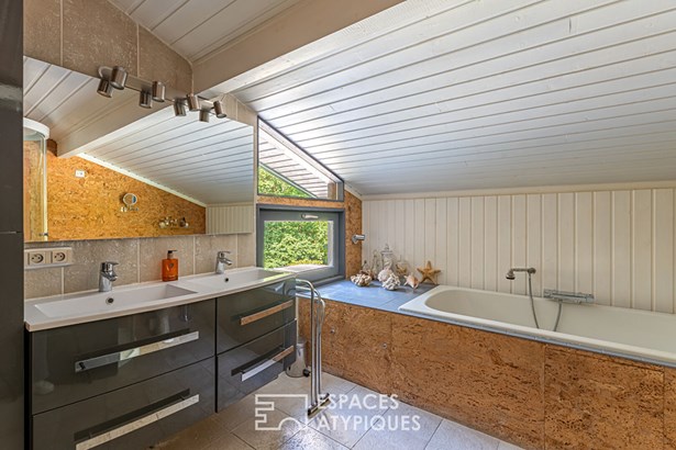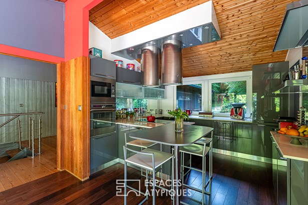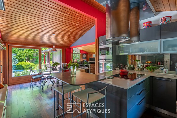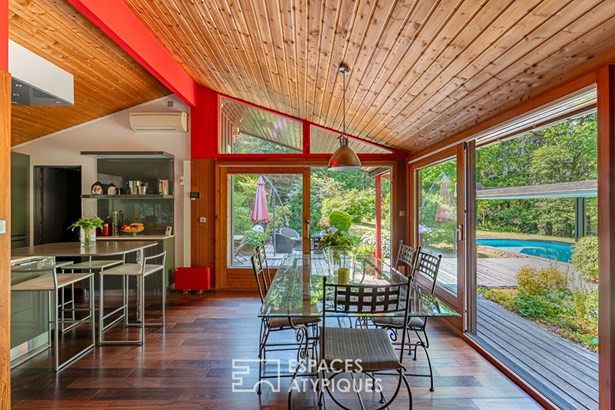 Outside, a covered wooden swimming pool heated by a heat pump prolongs the pleasures.