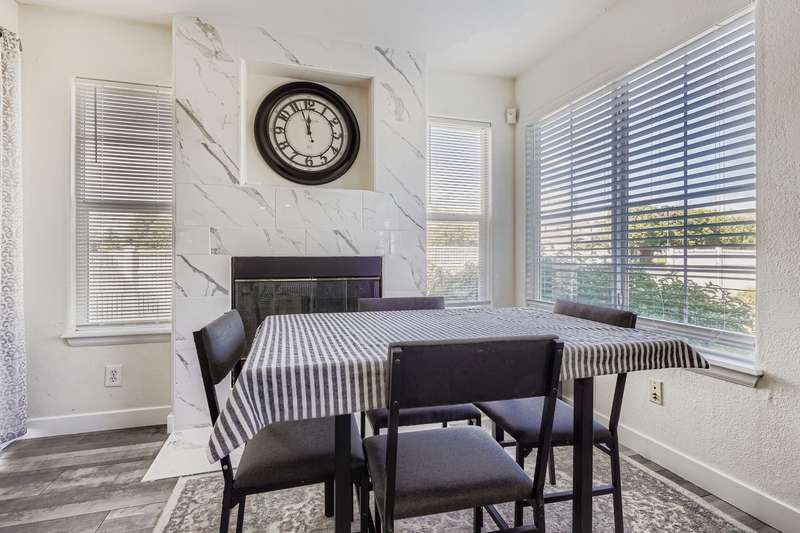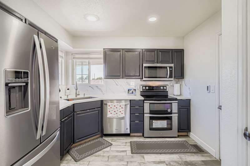 New Price and Lender Incentives! Beautifully updated end-unit townhouse-style condo with an attached 1-car garage. The main level showcases a modern kitchen with quartz countertops, marble backsplash, newer stainless-steel appliances, a new sink and faucet, updated hardware, and heated floors. A spacious living room and separate dining area with a cozy gas fireplace open to a private outdoor space through sliding glass doors. Upstairs, the primary suite features an updated bath with a soaking tub, while a secondary bedroom is served by another fully updated bathroom. New laminate wood flooring through the first and second floor. The full unfinished basement offers abundant storage and includes the laundry area. The garage is equipped with an outlet for an electric car charger. Convenient location and beautifully updated!