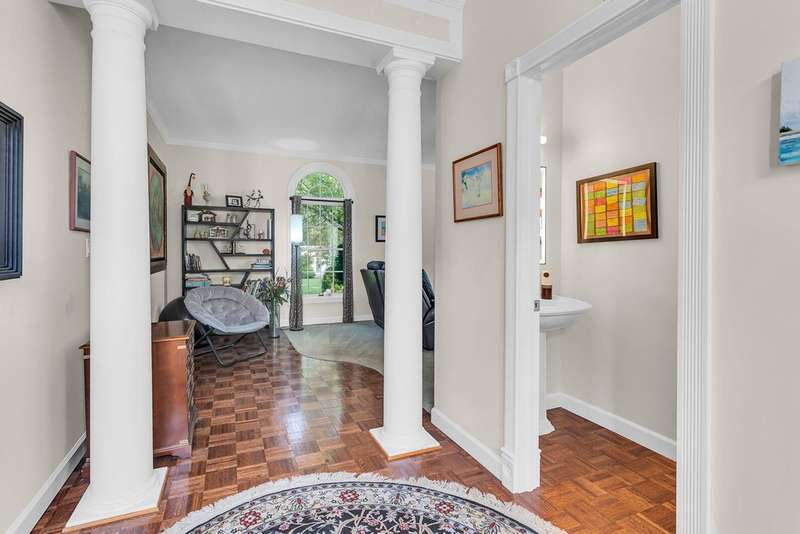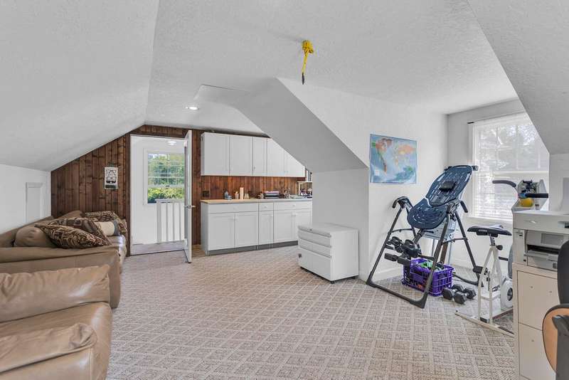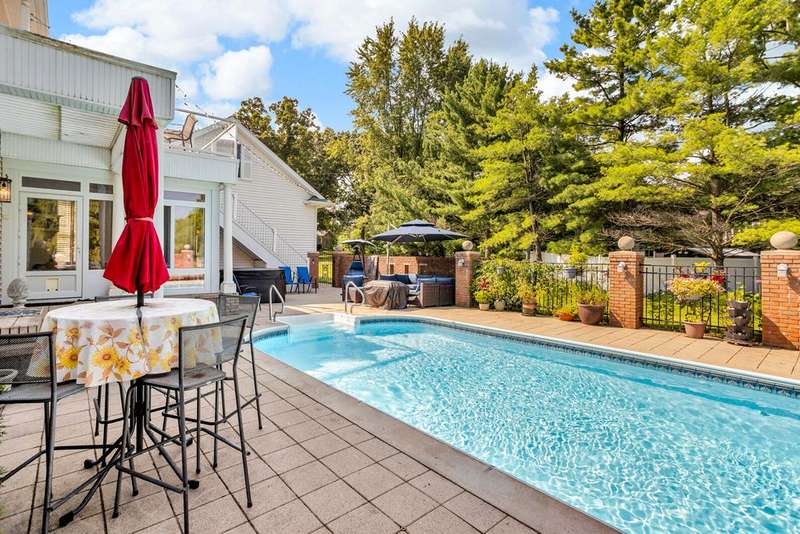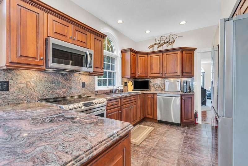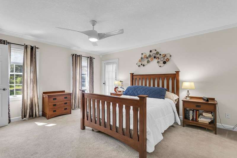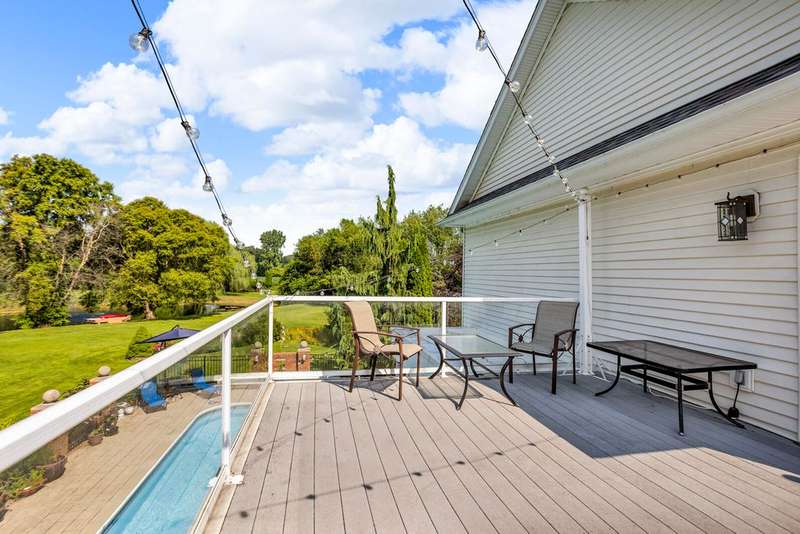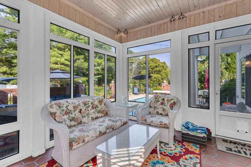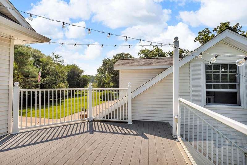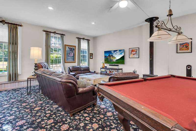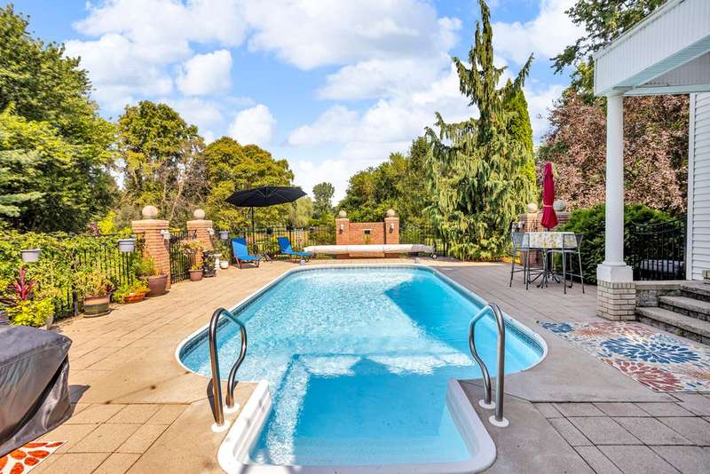 Custom-built 3-bed, 2.5-bath Colonial offering 3,800+ SF of above-grade living space on 4.7 acres. Features include a sun-filled solarium, family room with wet bar and wood-burning stove, and an updated kitchen with granite counters and stainless-steel appliances. The second-floor primary suite offers a walk-in closet, en-suite, and access to an elevated composite deck. Enjoy an enclosed porch leading to a mineral water in-ground pool, manicured grounds, and a pond with fountain, dock, and stairs to the water. Heated bonus room above garage ideal for home office and energy-efficient zoned HVAC. Pond is located entirely on the subject property. Generously sized garden shed with electricity. Two additional temporary structures included. Interior and exterior lighting, including pool and pond fountain are Alexa controllable. Garage features overhead doors on two sides as well as EV charging station. Solarium is heated. Most interior furnishings are negotiable.