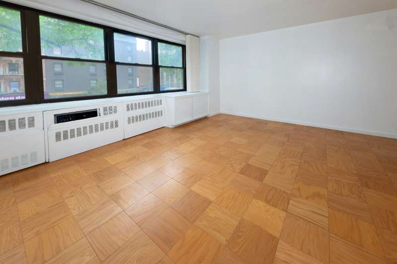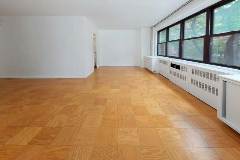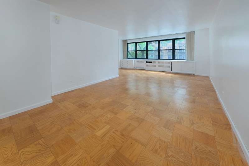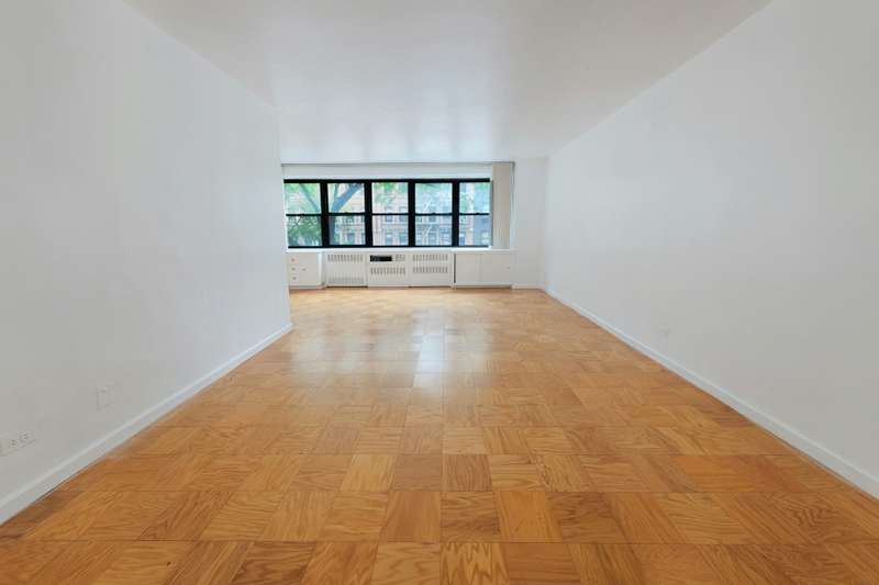 This oversized east-facing E-line alcove studio with treetop views offers a spacious sleeping alcove easily convertible into a junior one-bedroom. A dramatic wall of five oversized windows bathes the home in natural light all day long, highlighting its airy layout and new parquet floors. The thoughtfully designed floor plan includes three large closets, one double deep, a separate wide galley kitchen with excellent storage and an updated bathroom with a convenient dressing area.