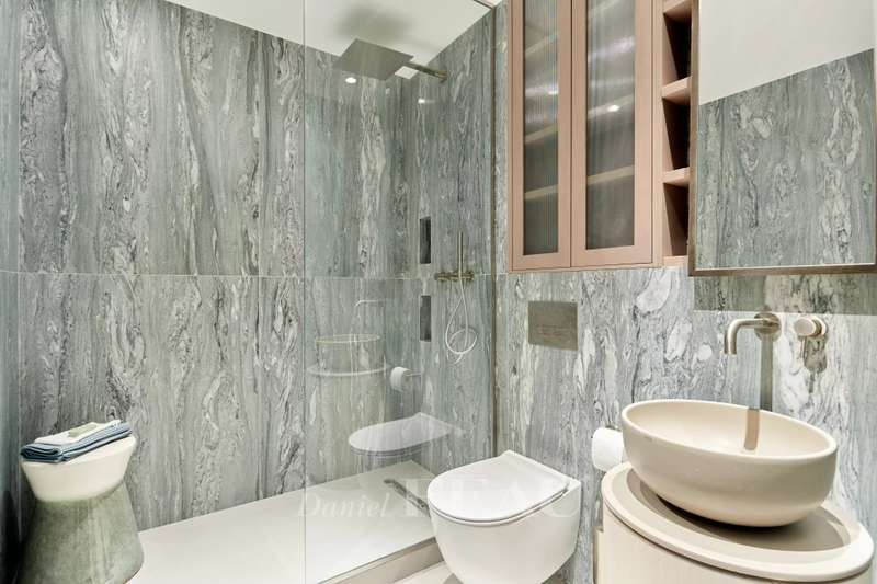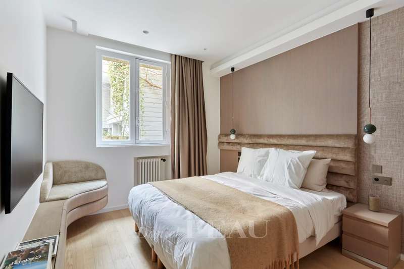 Saint Placide neighbourhood. This exceptional 103 sqm former workshop set in a leafy and peaceful alley has been meticulously renovated throughout. It includes a spacious living/reception room, a dining room and kitchen with a partial skylight, two bedrooms with bathrooms and ample fitted storage space, and two wc. With a shared cellar.