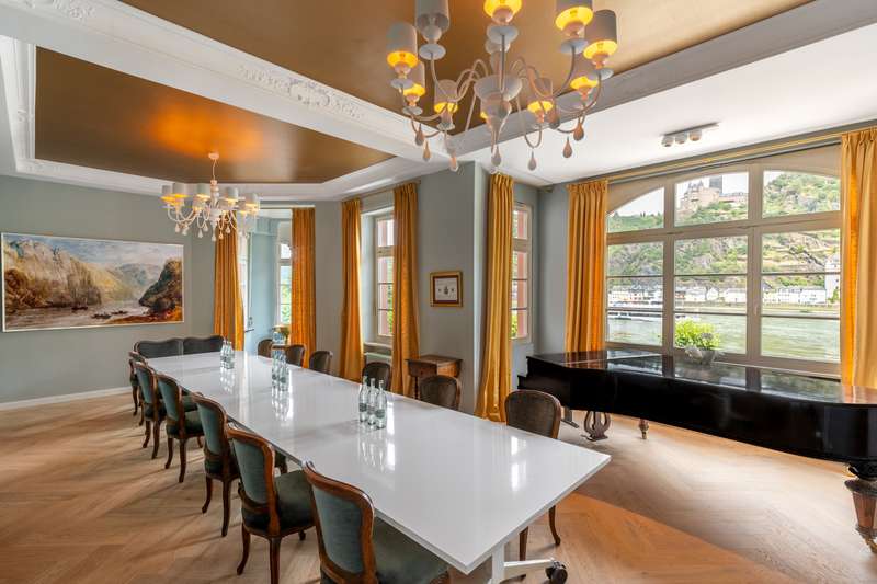 In an incomparable location, protected from flooding and in the first row of the Rhine, this stately property, built in 1892, has a living space of approx. 429 m² on a plot of approx. 2,403 m². From here, an impressive view of the Rhine, the venerable Katz Castle and the legendary Loreley opens up - embedded in the UNESCO World Heritage Upper Middle Rhine Valley, one of the most impressive cultural landscapes in Europe. A symbiosis of history, luxury and modern living comfort - this villa is an architectural masterpiece and an absolute rarity on the real estate market. Whether as a private retreat of exquisite elegance or as a prestigious commercial property - this property opens up a wide range of possible uses. Planning permission has already been granted for use as both a conference venue and an exclusive vacation residence. In addition, the listed status of this property opens up potential tax advantages, for example within the framework of the so-called monument depreciation allowance. A separate information letter is available for detailed information on tax aspects and financing options. The extensive outdoor facilities are particularly noteworthy: spacious terraces are spread over several levels, surrounded by impressive quarry stone walls and framed by majestic trees. This castle-like ambience lends the property an extraordinary aura and makes it a unique place of tranquillity, representation and inspiration. The interior also sets standards: each room has been completely redesigned and individually furnished over the past two years in collaboration with a renowned interior design firm. High-quality materials, exclusive fixtures and fittings and a well thought-out overall concept combine to create an atmosphere of grandiose harmony and timeless elegance. The villa is fully furnished and can be taken over on request, including the inventory, so that immediate, seamless use is guaranteed. The purchase of this property is free of commission for the buyer - the estate agent's commission is paid in full by the vendor.