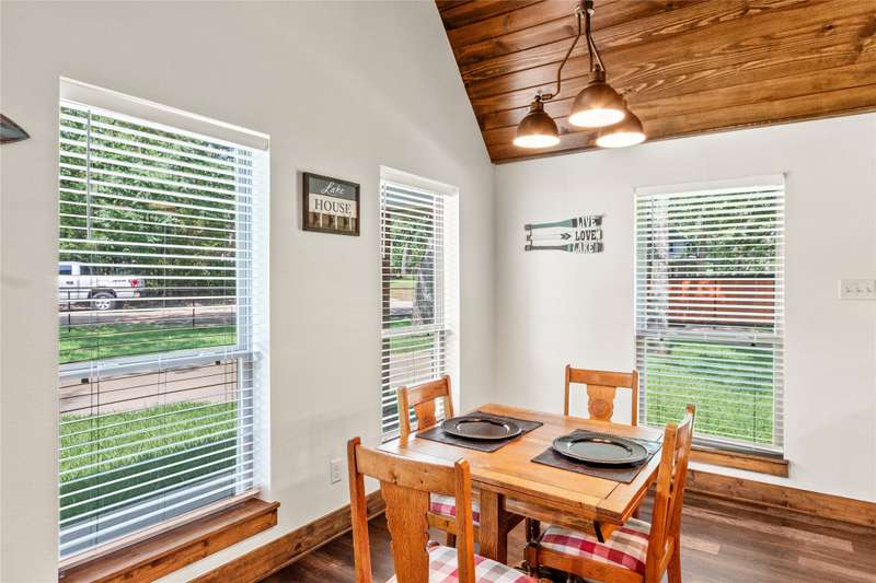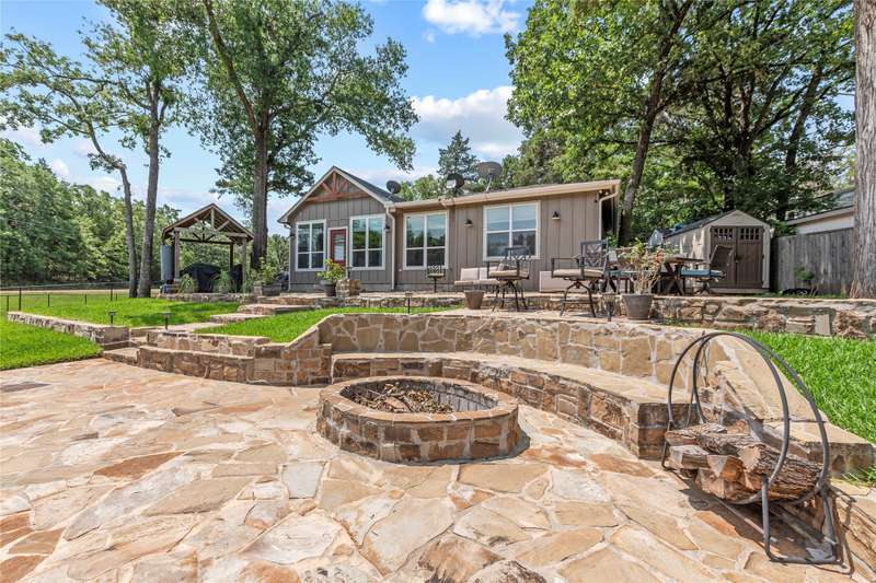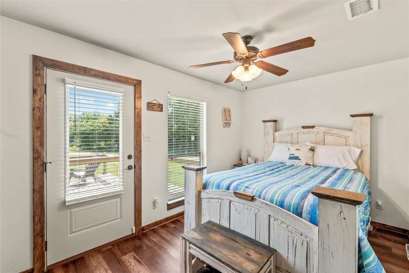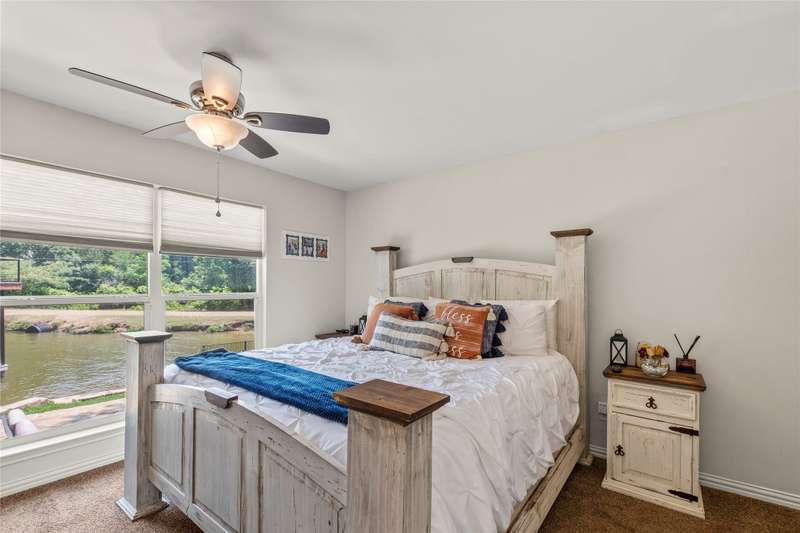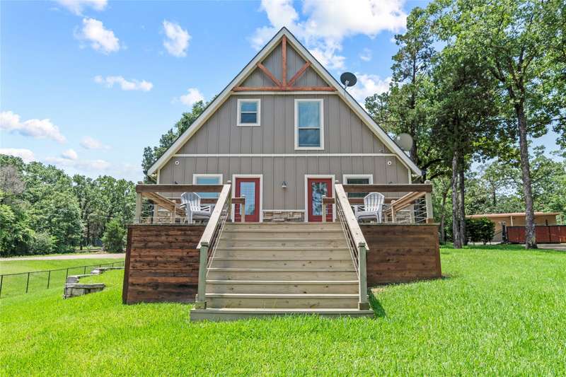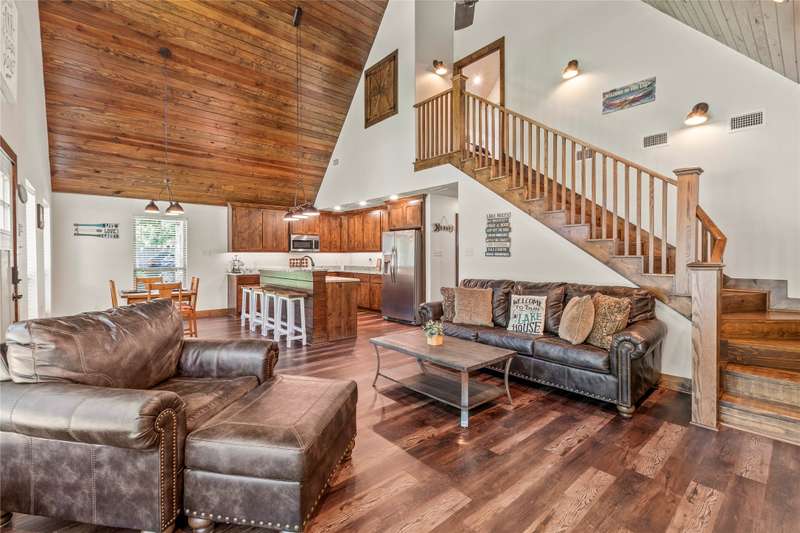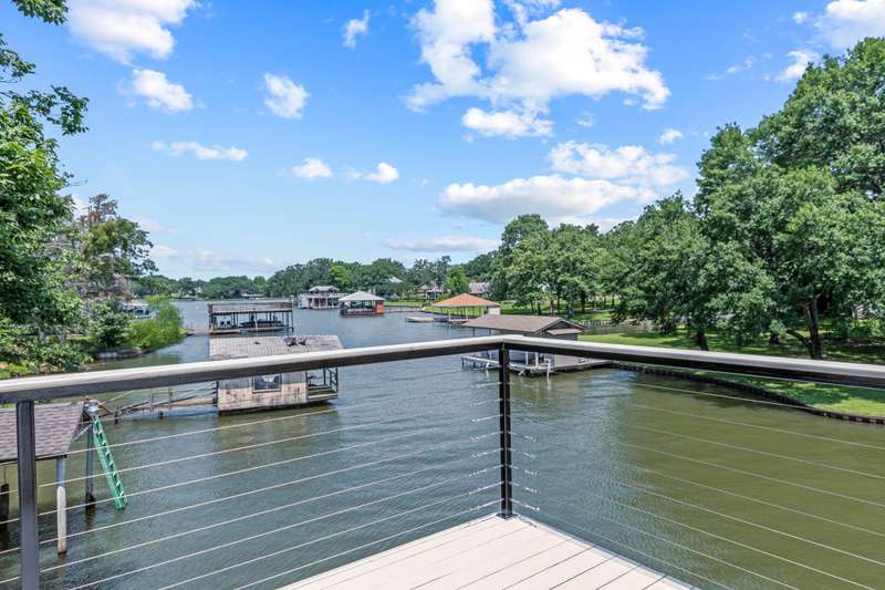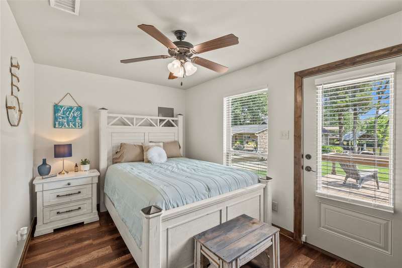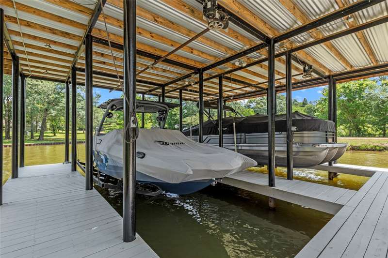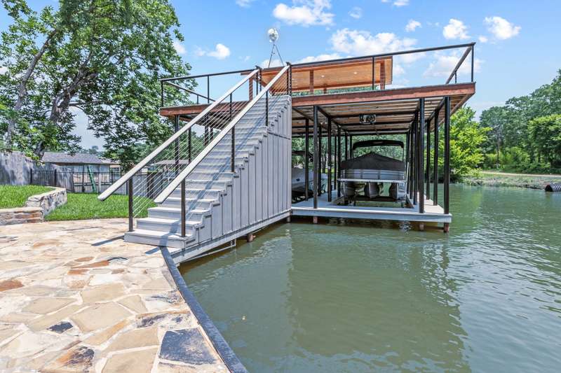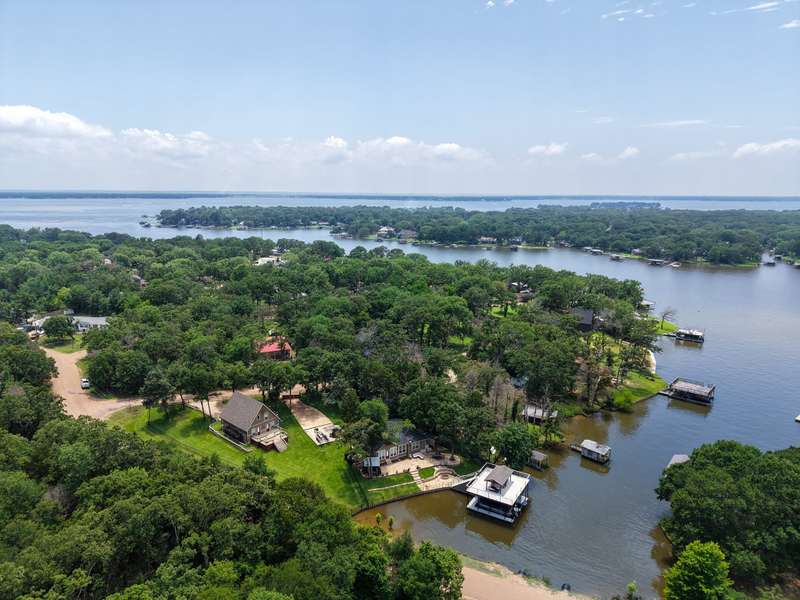 Don't miss this rare opportunity to own two charming adjacent waterfront homes on two fully fenced lots, each with its own private electronic gated entrance. Whether you're looking to accommodate extended family, entertain guests, establish a short-term rental income stream, or create a small corporate retreat, this unique setup offers exceptional flexibility and value. The main home, gutted and remodeled in 2017, spans 1,629 square feet with three bedrooms and two bathrooms. It features a spacious living area highlighted by a stacked stone fireplace, wood beam ceilings, a generous dining area, and a versatile flex room ideal for an office, hobby space, or exercise room. The second home, constructed in 2019, offers 1,400 square feet, also with three bedrooms and two bathrooms. Far more than a guesthouse, just like the main home it includes a full kitchen complete with granite counter tops, stainless steel dishwasher, refrigerator, range, microwave, and a well-sized utility room with full-size washer and dryer. Both homes boast serene views of a protected cove, with outdoor spaces that include either a large waterside deck or a flagstone patio perfect for relaxing or entertaining. A double-slip boathouse accommodates two boats, while the expansive party deck, partially covered for shade, provides an ideal vantage point to enjoy peaceful cove views. Set on half an acre with 172 feet of waterfront, the property offers abundant concrete parking and space to add a garage. Lake pump sprinkler system keeps the lawn and landscaping lush and beautiful. Both homes are offered mostly furnished with only a few exclusions, making this turnkey opportunity even more appealing.