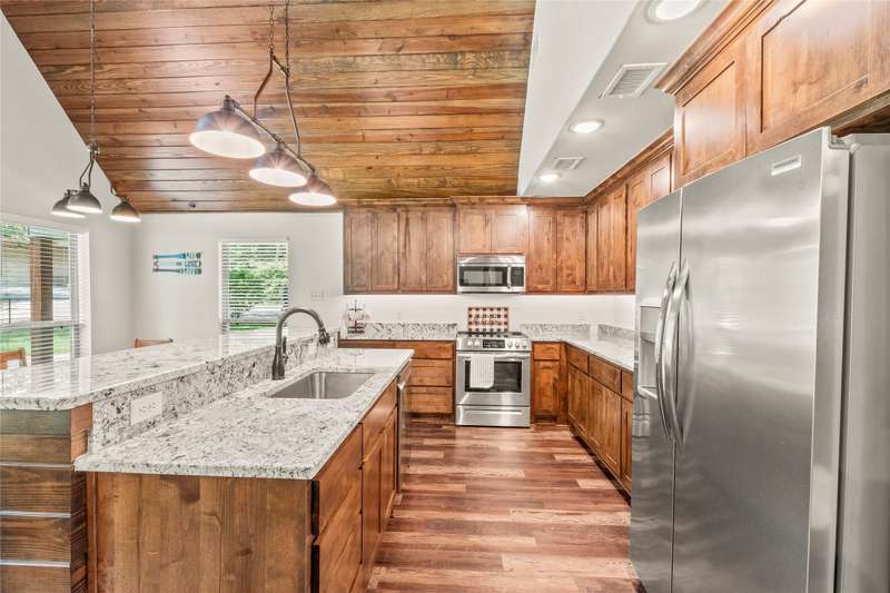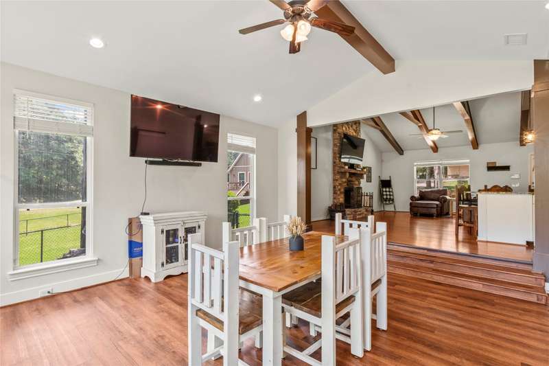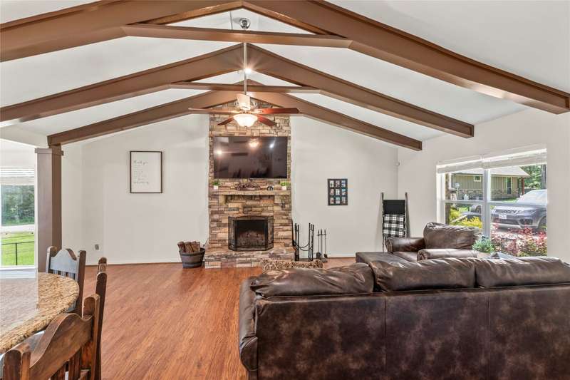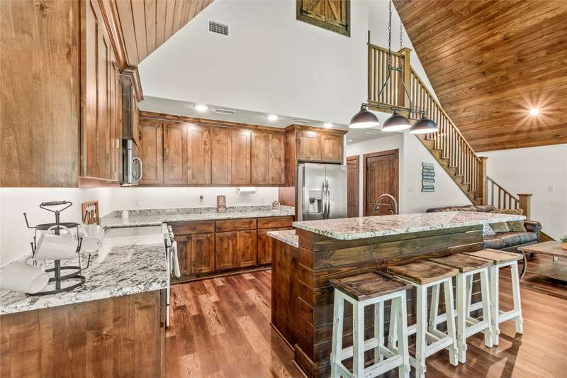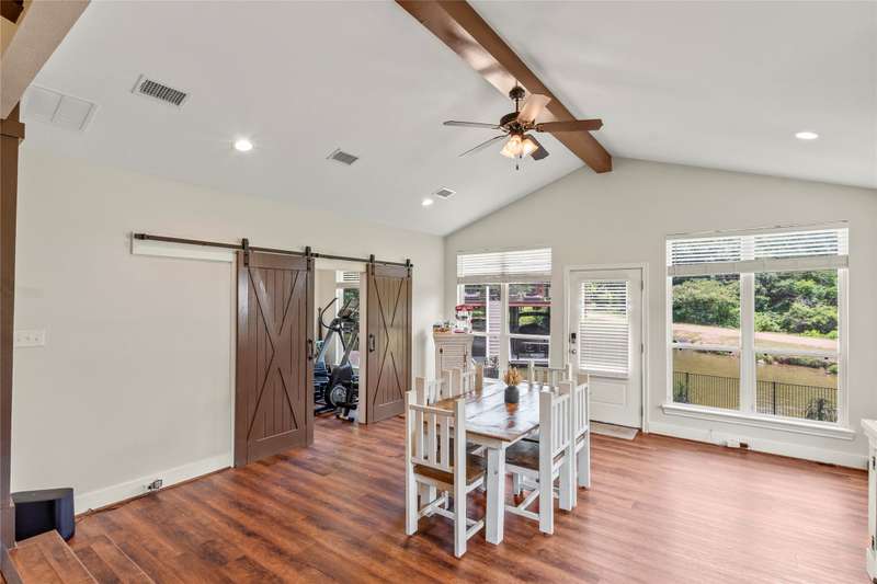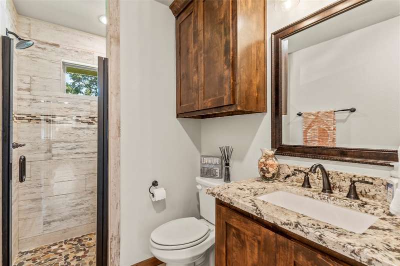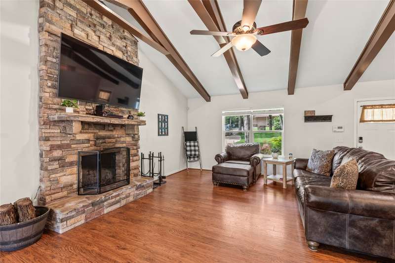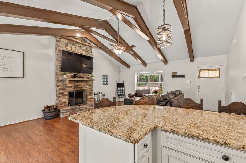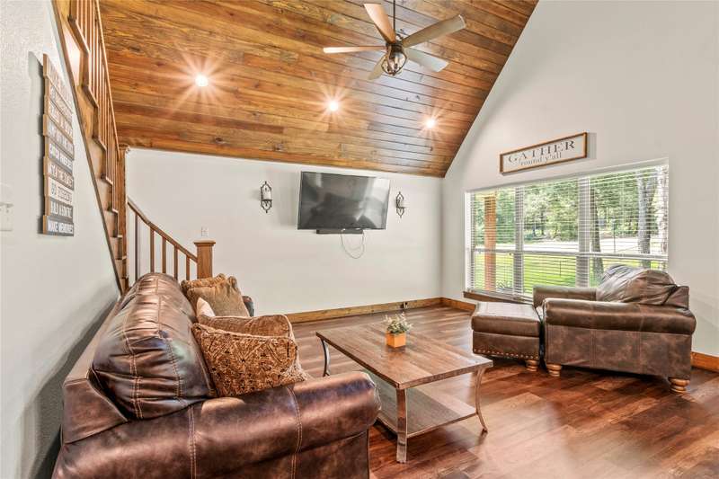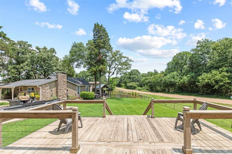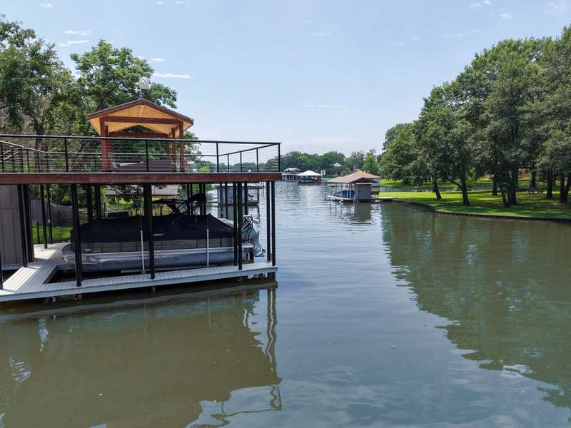 Don't miss this rare opportunity to own two charming adjacent waterfront homes on two fully fenced lots, each with its own private electronic gated entrance. Whether you're looking to accommodate extended family, entertain guests, establish a short-term rental income stream, or create a small corporate retreat, this unique setup offers exceptional flexibility and value. The main home, gutted and remodeled in 2017, spans 1,629 square feet with three bedrooms and two bathrooms. It features a spacious living area highlighted by a stacked stone fireplace, wood beam ceilings, a generous dining area, and a versatile flex room ideal for an office, hobby space, or exercise room. The second home, constructed in 2019, offers 1,400 square feet, also with three bedrooms and two bathrooms. Far more than a guesthouse, just like the main home it includes a full kitchen complete with granite counter tops, stainless steel dishwasher, refrigerator, range, microwave, and a well-sized utility room with full-size washer and dryer. Both homes boast serene views of a protected cove, with outdoor spaces that include either a large waterside deck or a flagstone patio perfect for relaxing or entertaining. A double-slip boathouse accommodates two boats, while the expansive party deck, partially covered for shade, provides an ideal vantage point to enjoy peaceful cove views. Set on half an acre with 172 feet of waterfront, the property offers abundant concrete parking and space to add a garage. Lake pump sprinkler system keeps the lawn and landscaping lush and beautiful. Both homes are offered mostly furnished with only a few exclusions, making this turnkey opportunity even more appealing.