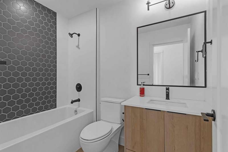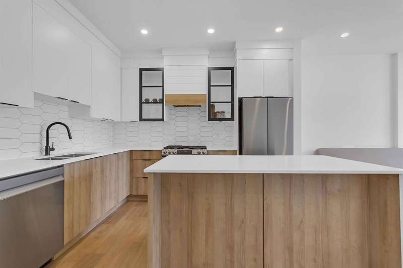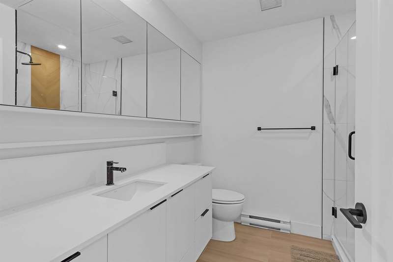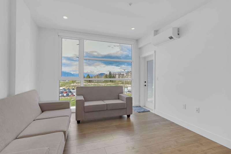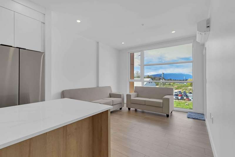 The Ellery. Bright 2-bedroom, 2-bathroom, 3rd-floor unit in Langley's desirable Willoughby neighborhood. Vaulted ceilings and a custom-designed floor plan create a efficient and spacious environment. The kitchen boasts quartz countertops to entertain friends & family, designer tiles & backsplash, a gas range & wide plank flooring. Underground secured parking, storage and bike locker. Enjoy incredible views with communal gardens, picnic benches, lounge chairs, a children's play area and a rooftop patio. It is situated in a central location, offering easy access to all amenities & walking distance to shopping, restaurants, cafes, and more. Heat pump for year-round comfort. Pets and rentals are allowed. Parking #6 P2 and two Lockers #6 & #15.
