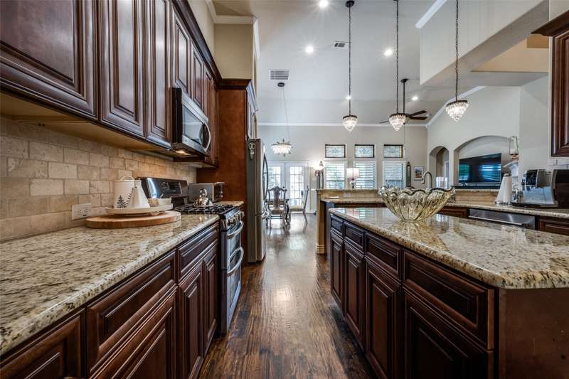 Amazing Custom Home on a Quiet Cul-de-sac* Impressive Drive Up with Massive Iron & Glass Double Entry Doors and Mature Landscaping* Step into a Soaring Entry, Wrought Iron Stair Railings, Extensive Hardwood Flooring and 4'' Plantation Shutters Throughout* Elegant Formal Dining w* Wide Base and Crown Moldings* Second Bedroom Down w* Walkin Closet and Dbl French Doors Now Serves as a Nursery* Comfortable Family Room with Full Wall of Windows w*Removable Stain Glass Uppers, a Media Niche and tumbled stone Fireplace w*Gas Logs* Sunny Breakfst Area with Window seat and Chandelier*Gourmet Island Kitchen w* Granite Countertops, Tumbled Stone Backsplash, 42'' Maple Cabinets, Stainless Appliances, Gas Cooktop, Dbl Ovens w*Convection, Huge Pantry and Desk or Coffee Bar Area* Private Master Suite with Coffered Ceiling & Window Seat*Luxurious Master Bath w*Spa Like Shower w*Multiple Spray Functions, Dual Vanities, Decorative Lighting, Jetted Tub, Porcelain Floors and a California Designed Closet with Seasonal Storage*HUGE Gameroom with Great Views and Double French Doors*Spacious Secondary Bedrooms all with Walk In Closets* Media Room Finishes Include Sconce Lighting, Shelving for Storage and Surround*This Backyard is made for Outdoor Living* Large Stone Covered Patio and Fully Bricked Outdoor Fireplace* Plumbed for a Gas Grill, Lush Landscaping and BIG side yard* Even your Car will Enjoy the Epoxy garage floors*