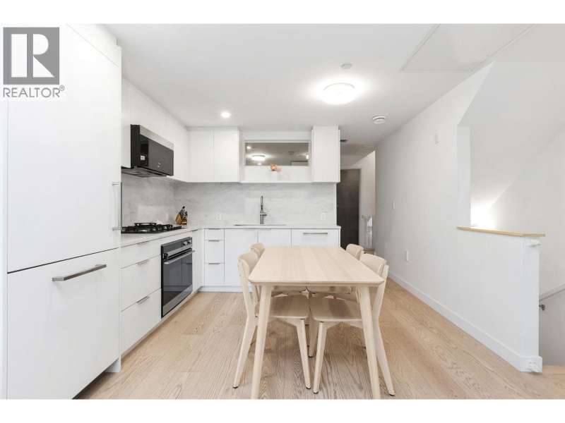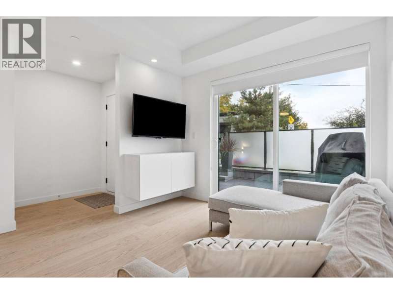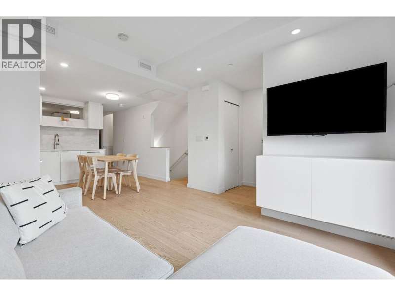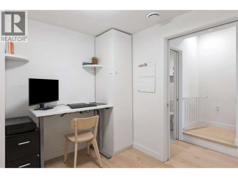 Welcome home to your bright, South facing, front row townhome in Moodyville´s coveted Morrison On The Park with beautiful top floor city + water views and impressive upgrades. You´ll love the contemporary design and efficient use of space in this home. The front patio welcomes you and your guests into your open concept Living/Dining area and beautiful chef´s kitchen complete with premium SS appliance pkg. Also on the main floor is a multi purpose bdrm or office/den space with the primary and third bdrm on the upper floor. The lower level offers a perfect Rec Room for visitors, WFH space or gym with direct access into the parkade and nearby parking stalls + 382 SF storage ROOM with endless possibilities for all the gear + tools! $150K+ spent in upgrades incl. AC, XL Storage Rm, HW floors + 2nd pkg! (id:58403)