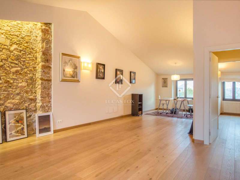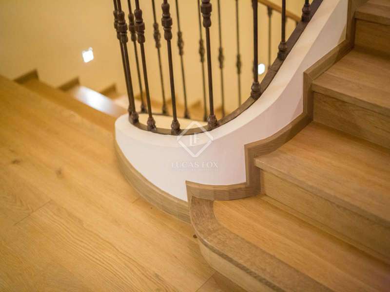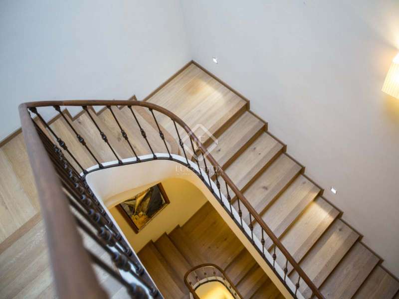Located on a well-known public square at the heart of Palafrugell, with very pretty park views and just a few metres away from the town centre, we find this gorgeous renovated Modernista house for sale. The original solid wood entrance door opens up to reveal a second lacquered security door leading to the hall. From the hall we have direct access straight through the house to the wonderful garden with its patio area and lawn. Here we find a stone well which has been restored and made safe for children, providing water for the garden of approximately 300 m². The ground floor of the house accommodates the beautiful spacious living room with a fireplace, a double bedroom, the kitchen diner and utility room and a guest toilet. A stunning wooden staircase with a wrought iron banister and golden period decorations leads us up to the first floor. Here we find 3 double bedrooms, 2 of which have en-suite bathrooms and large dressing rooms, and a complete bathroom with a shower. The second and final floor offers a double bedroom, a complete bathroom and a large living room which is currently used as a study and reading room. The house benefits from central heating with the original cast iron radiators and double glazed float windows with mosquito guards, thermal insulation and anti-sun feature, providing energy saving of up to 30 % a year. The special light system provides subtle, warm lighting which is built in to the wall, 30 centimetres from the floor throughout the property. The original wooden beams have been restored, adding character to the house and the flooring is high quality wood on the first and second floor and tiles on the ground floor. What makes this house so special is the incredible renovation work that has been carried out on it. The walls have been completely rebuilt and the electrical, gas and plumbing installations are all new, yet the house maintains period features and its original charm. The 3-car garage located in the communal underground car park a few metres away from the house is also available to buy separately. This property would make an incredible family home with the picturesque beaches of Palafrugell and Llafranc nearby and local amenities on the doorstep.