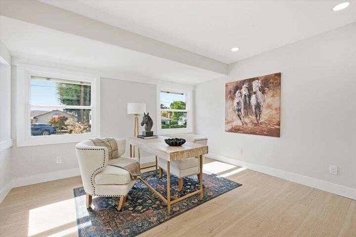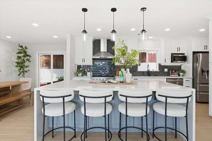 Nestled in the prestigious East Foothills neighborhood, adjacent to the renowned San Jose Country Club, this sprawling single-story residence offers the perfect blend of luxury, privacy, and modern sophistication. Completely reimagined with premium finishes throughout, this 4-bedroom, 3-bathroom main home welcomes you with soaring raised ceilings, wide-plank WPC flooring, and fresh smooth-texture walls bathed in new designer paint. The gourmet chefs kitchen boasts a large island and premium appliances. All bathroomss shine with contemporary fixtures; the primary suite features a walk-in closet and spa-like en-suite. A brand-new composition shingle roof and oversized two-car garage add peace of mind. Bonus: attached studio in-law unit with private entrance and full bathperfect for guests or income. Outdoors, a gazebo picnic area with classic wood-burning BBQ invites al fresco gatherings.