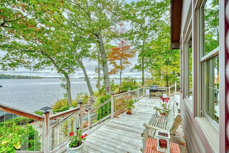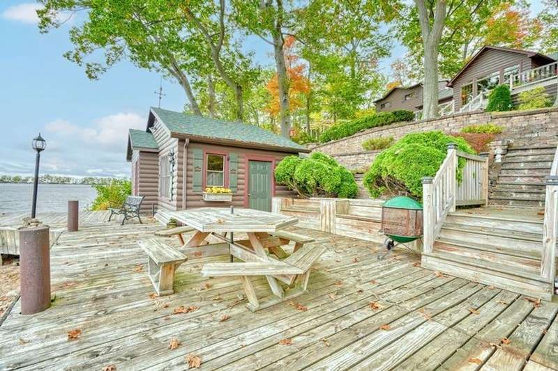 ***RARE FIND***MILLION DOLLAR VIEWS*** ENJOY MAGNIFICENT SUNSETS OVER SODUS BAY & LAKE ONTARIO!***FABULOUS 5 BDRM (COULD BE 7 BDRMS) 2.5 BATH WATERFRONT HOME ON DESIRABLE LEROY ISLAND! ADIRONDACK STYLE ENTRY OPENS TO A STUNNING FIREPLACED GREAT ROOM W/CATHEDRAL CEILING AND WALL OF GLASS OVERLOOKING WATER! INCREDIBLE CHEFS NATURAL CHERRY KITCHEN FEATURES OVERSIZED BKFST BAR ISLAND, EXTENSIVE GRANITE COUNTER WORKSPACE,STAINLESS APPLIANCES,FULL WALL OF ADDITIONAL CABINETRY & WALK-IN PANTRY! FIREPLACED CASUAL DINING AREA + RETREAT W/ACCESS TO BRAZILLIAN IPE DECK! 1ST FLOOR PRIMARY ENSUITE W/ORIGINAL CLAW FOOT TUB + GENEROUS SIZED WALK-IN SHOWER! 4 ADDITIONAL BDRMS ON 1ST FLR! 2ND FLR FEATURES 2 SPACIOUS ROOMS + 1/2 BATH. 2ND FLR ROOMS ARE USED AS BEDROOMS WITH AMPLE SPACE TO BUILD CLOSETS. ALSO COULD BE A YOGA ROOM OR ART STUDIO! THE POSSIBILITIES ARE ENDLESS! W/O PARTIALLY FIN BSMT W/CRAFT ROOM, WINE STORAGE ROOM & FABULOUS WORKSHOP! 2.5 CAR ATT GARAGE+2 CAR DETACHED GAR! BOATHOUSE & PERMANENT DOCK + BOAT LIFTS! UPDATES:KIT/DINING/RETREAT/PRIMARY SUITE ADDED IN 2013. 2 HVAC SYSTEMS:JAN 2025 AND 2013. EXTERIOR PAINTED 2023. ROOF OVER BOATHOUSE & ORIG SECTION OF HOME + DET GARAGE OCT 2024. INCREDIBLE "TURN KEY"PROPERTY - ONE OF A KIND OPPORTUNITY! BONUS: 2 MOORINGS ARE "GRANDFATHERED" PER SELLER! DELAYED NEGOTIATION. ALL OFFERS ARE DUE ON MONDAY, OCTOBER 20TH AT 12:00PM. NO ESCALATION CLAUSES PER SELLER. PLEASE SUBMIT HIGHEST AND BEST OFFER.