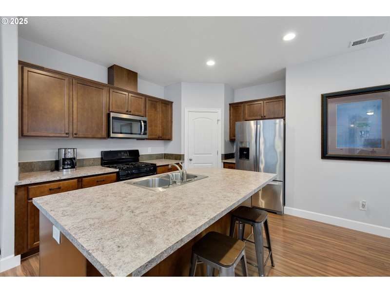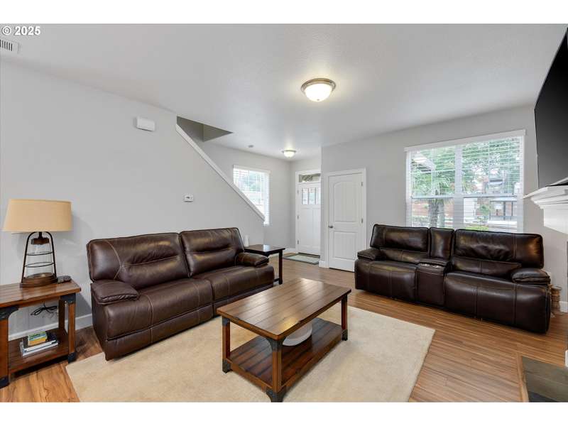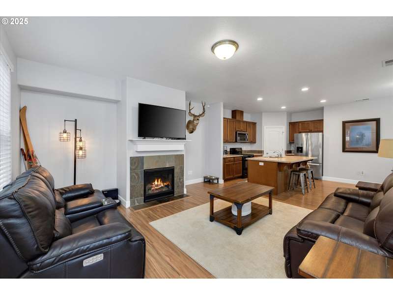Light-filled end-unit townhouse offering 3 bedrooms and 2.5 bathrooms in a desirable Sandy neighborhood. The open floorplan features tall ceilings and a spacious living room with a cozy fireplace. The kitchen is designed for both style and function, showcasing a large island, stainless steel appliances, gas range, and maple cabinets. The primary suite includes a walk-in closet and private bath with double sinks. Enjoy low-maintenance living with modern comfort and convenience—close to parks, schools, and all the charm of Sandy.