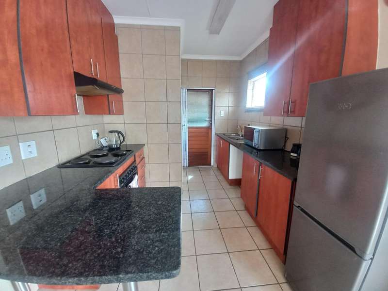 This cozy and modern home in a secure complex offers you open plan lounge and kitchen, 3 bedrooms 2 bathrooms and double automated garages. The kitchen with cupboards and granite tops , an electric stove and a breakfast nook. There is a small garden and a build in braai area. Call today to view this excellent property.