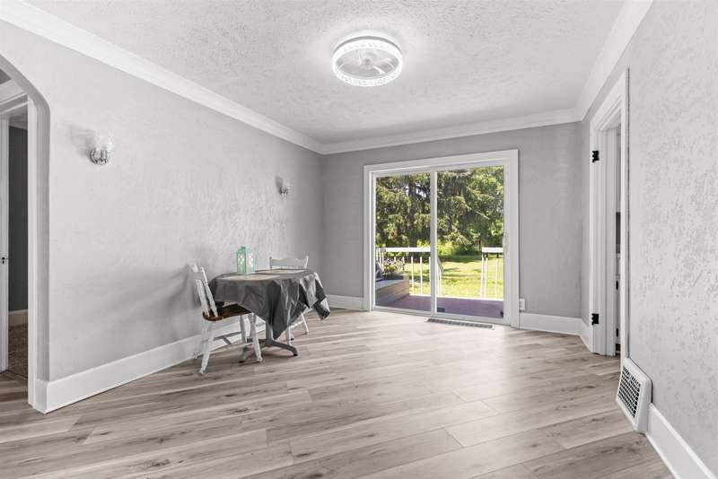 Back on the market. The property has already been inspected and appraised, making it a great opportunity for serious buyers! Check out this totally updated home situated on .85 of an acre! Enjoy the country setting but still close to amenities. Large living room and formal dining room. Main level has all new flooring, light fixtures and has been freshly painted in stylish grey and white color scheme. Ample cabinets in kitchen and stove, fridge and micro stay. Sliders in dining room go out back to deck overlooking the tranquil back yard. 2 bedrooms on the main floor and full bath. Great space upstairs for a master suite or perfect for a bedroom/ play room for the kids. Brand new full bath, new carpet, walk in closet, built-in shelving and 2 areas of space for your needs. Large 2.5 car detached garage plus another outbuilding for storage, a shop or hobbies. All the roofs are new, brand new furnace and central air and newer hot water heater. House exterior has been freshly painted and new siding on garage and outbuilding. Meticulous seller paid attention to every detail! There’s nothing to do but move in and enjoy this great property, county taxes!