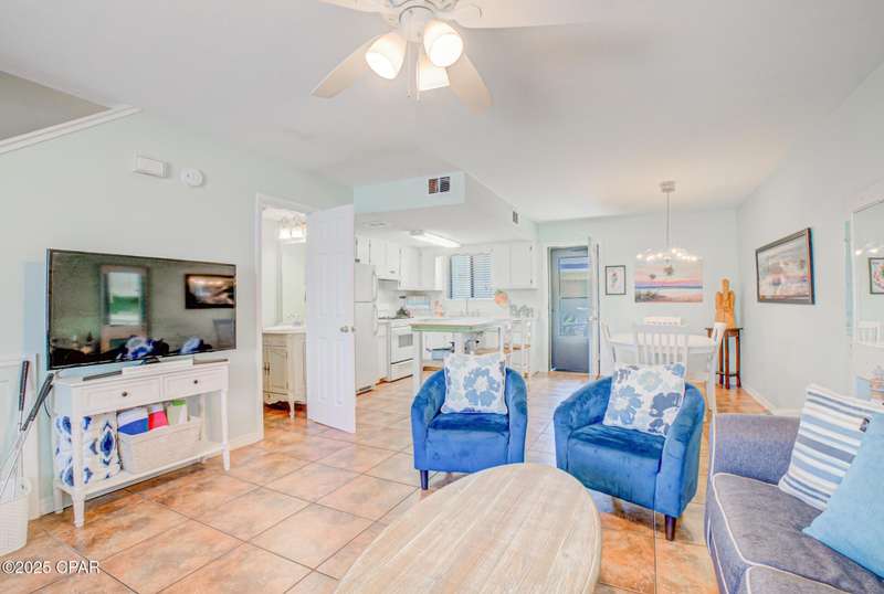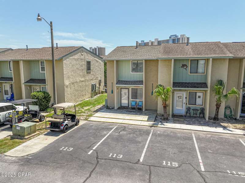 Turnkey Beach Retreat! End Unit at Gulf Highlands with New Roof & Hot Water Heater 2025! Nestled just across the street from the sugar white sands of the Gulf Coast, this charming end unit 2 bedroom, 1.5 bath townhouse will cure your need for vitamin sea! No more elevators or crowded parking garages, here you'll enjoy the convenience of parking at your front door and trading your car keys for flip-flops and golf cart keys. Whether you're socializing on the pickle ball courts, playing mini-golf with the family, grabbing a bite at your private beach front clubhouse, or enjoying a sunset stroll to the Gulf, this townhouse is your gateway to the Panama City Beach lifestyle. At 113 Cindy Lane, you are just steps away from the pool, shuffleboard, pickleball and tennis courts. With a dedicated golf cart parking spot and a south-facing balcony, NEW ROOF and NEW WATER HEATER 113 Cindy Ln a must-see! Inside, you'll appreciate the solid surface flooring throughout, charming coastal decor, and turnkey furnishings, making it an ideal vacation rental or second home. Convenience meets lifestyle at Gulf Highlands-- you're mere minutes from local grocery stores, shopping, and diverse dining options, including The Beach House onsite. Gulf Highlands Resort is truly the most amenity rich resort on PCB, packed with amenities for the whole family: 11 swimming pools (5 heated), 4 tennis courts, pickleball, shuffleboard courts, a fitness center, mini golf, playground, and a community clubhouse. Best of all, residents enjoy a private beach clubhouse right on the Gulf with a pool and snack bar--just steps from the sand!