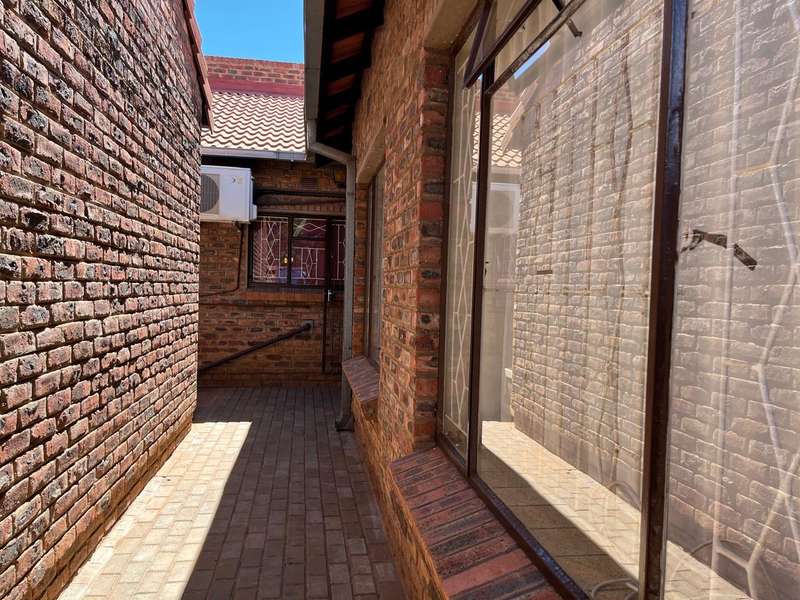 JUST LISTED !!!! Be The Proud Owner of this ?Ǫ?Ǫ ?Çó Town house situated in very popular area - priced to go!!! ?Çó Face brick, , very neat and modern ?Çô lock up and go ?Çó Big Corner Property BONUS = JO-JO tank & pump THIS PROPERTY OFFERS * 3 Bedrooms, spacious and with Built-in Cupboards ?Çó 2.5 bathrooms. ?Çó Big Open plan kitchen with lots of built-in cupboards, gas stove and scullery ?Çó Open Plan Lounge and Dining room with a Jet Master Gas Fireplace ?Çó Enclosed stoep/TV room open up onto the garden and braai area ?Çó Underfloor heating in Lounge ?Çó Manageable garden with irrigation ?Çó Double garage ?Çó Double carport This property is totally fenced and secured with electric fencing and burglar bars and alarm. Call us today for an appointment