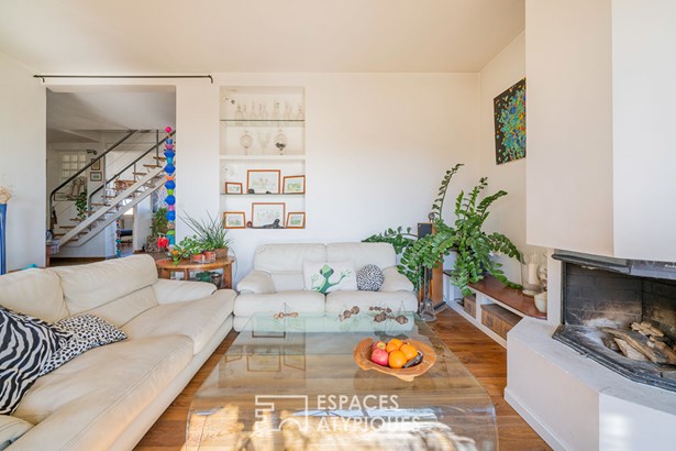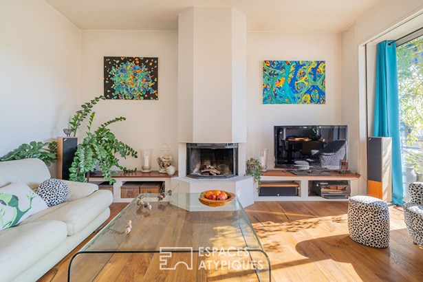 The main living space, facing west, opens onto a terrace that naturally extends the living room and reveals a striking panorama through its large bay windows. The kitchen, both functional and welcoming, completes the space. To the east, the sleeping area consists of a master suite and a second bedroom with walk-in closets. A reading area completes this level to provide a soothing setting. Accessible by a Jean Prouve-style staircase, the upper level is the true architectural signature of this property. Designed as a hybrid space between interior and exterior, it accommodates an additional sleeping area, an office and a veranda with large openings which can perhaps be considered as a 4th bedroom. A true suspended cocoon, this private rooftop deploys a panoramic terrace, ideal for moments of relaxation overlooking the city. In the immediate vicinity of shops, transport, schools and motorways