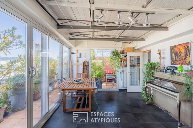This rare property combines generous volumes, omnipresent light, and a 360° view of Marseille. The rooftop villa feel and the nautical-inspired layout, in which designer furniture interacts with works of art, reinforce the unique character of the place.