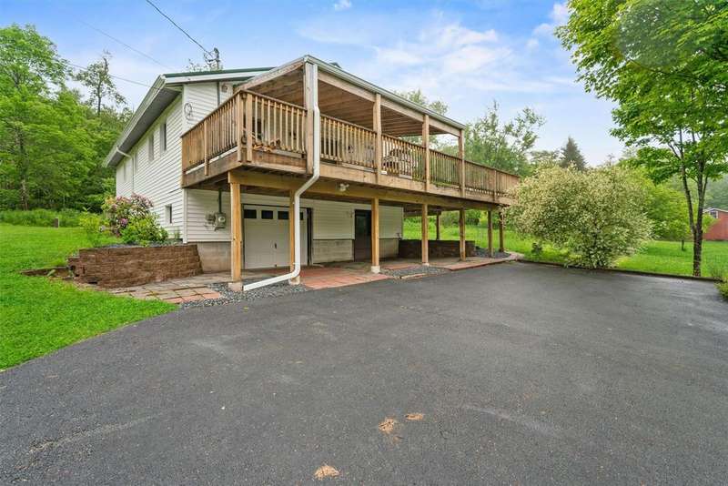 Charming ranch home situated on 1.5 acres under 2.5 hours from NYC! offering the perfect blend of comfort and countryside living. This 3 bedroom, 2 full bathroom residence features a spacious layout, vaulted ceilings, personal bathroom in the primary suite, hardwood floors, newly constructed wrap around deck and 1,260 sqft of space in the walkout basement ideal for ample storage or future expansion. Perfect location for those seeking privacy, and outdoor activity such as hunting, hiking, atv riding or simply to enjoy nature. Experience the beauty of the Catskills!
