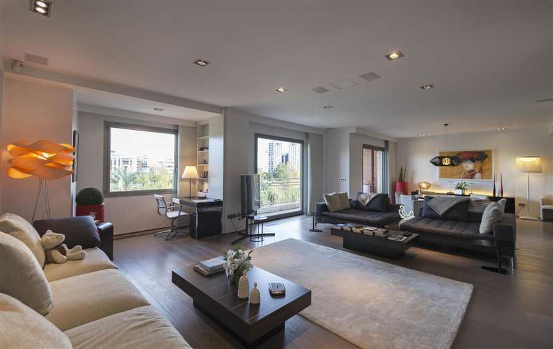 This unique property completely renovated offering a top quality design is found in one of the most prestigious streets of the Ensanche district, facing the Turia gardens. The property has a surface of 298m2 with ample spaces. The front area comprises a large lounge with several ambiences and access to a terrace and a balcony, an office-bedroom, a completely equipped kitchen and a guest toilet. The back area hosts the sleeping quarters: an en-suite bedroom, two large bedrooms with dressing areas and bathrooms, one of which is equipped with whirlpool. All rooms of the property receive light. Its design, material quality or facilities including enclosures, appliances, doors, home automation system or air conditioning plus the privileged views over the gardens and even the City of the Arts and Sciences make this an incredible home. Jacinto Benavente is found in the so-called Ensanche, a district that offers all kind of services, one of the most sought-after of the city. This neighbour is perfectly connected with the rest of the city and you can walk to places as different as the City Hall or the City of the Arts and Sciences. The building in which it is located is in perfect condition and offers concierge service. It enjoys tranquillity as there is only one property per floor. An exclusive and singular property in a unique enclave.