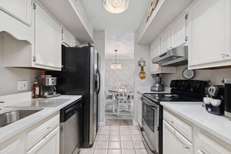 Beautiful updated 2nd floor unit in desirable Shorely Woods offers spacious living! Freshly painted, new luxury vinyl flooring & lighting throughout. Enter into the sun filled living room leading out to your balcony. Dining room flows to the galley kitchen with stainless steel appliances & new countertops. There's ample storage in the huge hallway closet/pantry. A large master bedroom with a walk-in closet has direct access to the updated bathroom.The bathroom also has a secondary access from the hallway for your guest. Laundry room located on the same floor. Private storage room located next to unit offers built-in shelving. Convenient to the Village, Metra, Restaurants, Shopping, Citizens Park & Library.