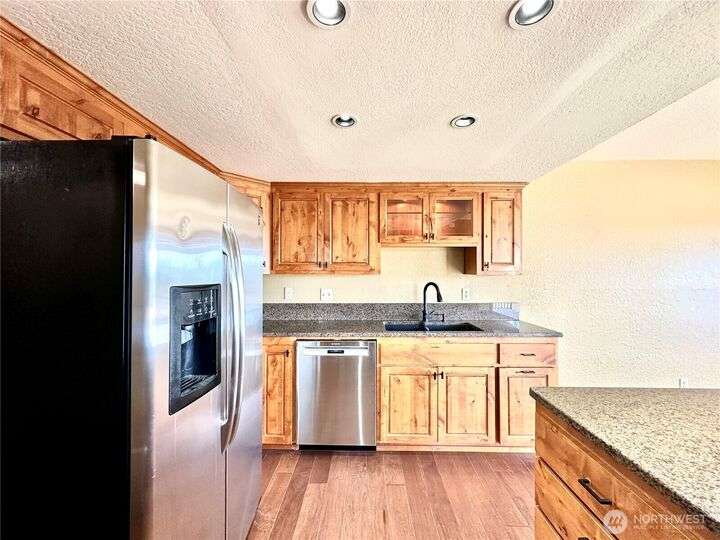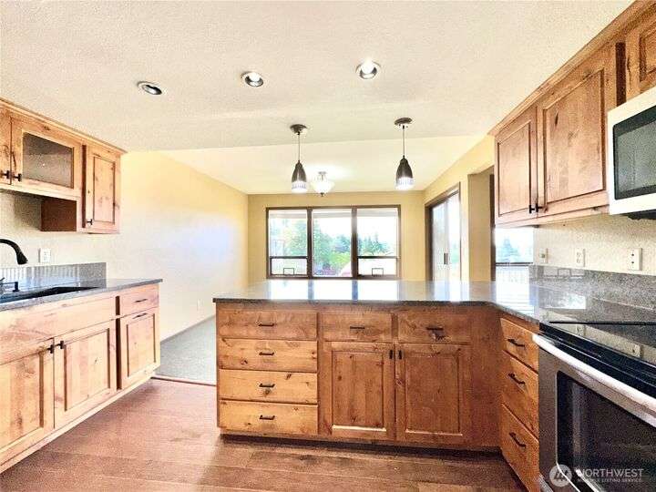 Available now! Don't miss this stunning top-floor 2 bed / 2 bath unit featuring an expansive deck with serene water views-ideal for sunny days and entertaining guests. Enjoy cooking in the updated chef's kitchen with granite counter-tops and modern finishes. Located just blocks from Juanita Village's shops, restaurants, and fitness studios, and only minutes to 1-405 and Totem Lake Village for added convenience. Water, sewer, and garbage are included. Pet-friendly for cats (with $25/month pet rent). Situated in a highly sought-after school district, this unit truly has it all-comfort, convenience, and location!