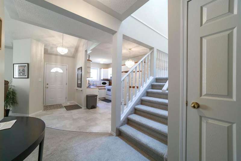 Welcome to Centre Court Condos, where comfort meets convenience in the heart of Camrose! This beautiful 2-bedroom, 2-bathroom condo offers a carefree lifestyle close to downtown, Mirror Lake walking trails, and the Senior Centre. Inside, you’ll find vaulted ceilings, an open staircase, and a charming balcony that overlooks the main level. The main floor features a generous primary suite complete with a walk-in closet and ensuite, as well as the convenience of main floor laundry. Upstairs, enjoy a bright bonus room with a skylight, a second bedroom, and another full bathroom—perfect for guests or hobbies. The lower level is a blank canvas ready for your personal touch, with plenty of room for storage. A single attached garage adds to the appeal of this low-maintenance, well-located home.