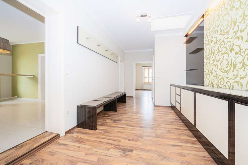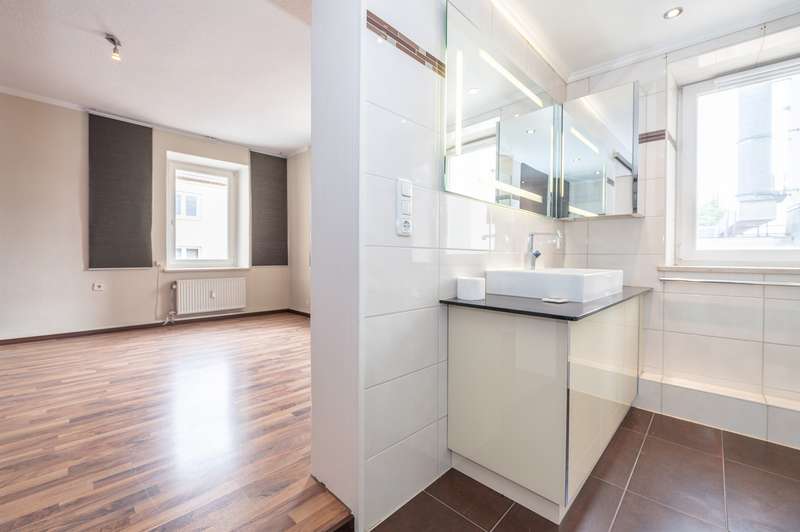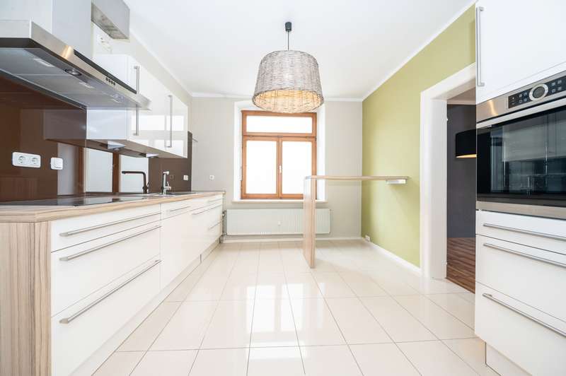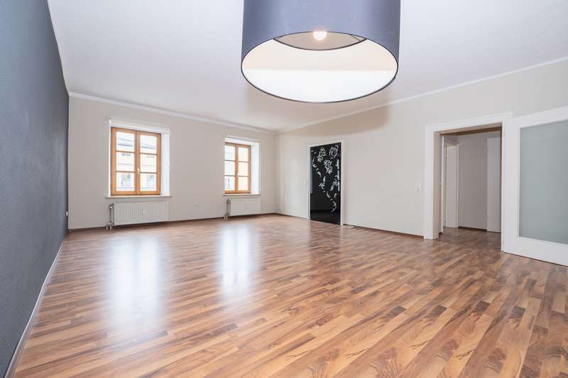 With a living space of around 100 m², this spacious apartment offers an ideal room layout for couples or small families. The apartment is in a modernized condition and impresses with its well thought-out room layout and functional furnishings. Upon entering the apartment, you enter a spacious hallway equipped with built-in furniture and a wardrobe. This practical solution provides ample storage space and ensures a tidy appearance. The floors of the living rooms, bedrooms and hallway are covered with high-quality laminate, giving the apartment a warm and inviting feel. A particular highlight of the apartment is the large, modern kitchen, which is equipped with all the necessary appliances. The adjoining living area allows for an open and communicative room design, which is ideal for cozy get-togethers with family and friends. The living room offers enough space for a cozy seating area and lets in plenty of natural light, which supports a pleasant living atmosphere. The apartment has two bedrooms, one of which is equipped with a modern en-suite bathroom. The bathroom has a shower, WC, washbasin with mirror cabinet and washing machine space for added convenience. A further room is available for flexible use - whether as a children's room, office or guest room, there are no limits to your creativity here. Another practical detail is the separate storage room, which offers additional storage space for various household utensils. The central heating provides cozy warmth in all rooms and contributes to a pleasant living climate. A parking space can be rented by arrangement if required. As the building is a listed building or part of a listed ensemble, there is no obligation to submit an energy certificate. This is a permitted exception for listed buildings in accordance with the Building Energy Act (GEG). This apartment offers a range of amenities and a well thought-out room layout that meets the demands of modern living. The central heating system also ensures a pleasant indoor climate in all seasons. Overall, this apartment is ideal for couples or small families looking for a modern yet functional living solution in a historic setting. You can find your new home here and move straight in. Don't hesitate and arrange a viewing today to see the quality and benefits of this property for yourself. Don't miss this opportunity to move into a comfortably modernized apartment in a central location.