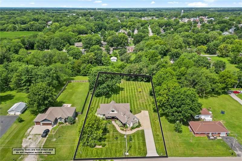 JUST REDUCED!! Welcome to 4,821 sqft. of beautifully finished living space in this stunning 1.5-story custom home, sitting on a manicured 1.10-acre lot in Lawson. This 4-bedroom, 4.5-bathroom property offers the perfect blend of luxury and functionality, located just minutes from Lawson schools, Hwy-69, and I-35 for an easy commute. Inside, youll find gorgeous hardwood floors, spacious layout, a surplus of large windows, custom cabinetry, and high-end JennAir kitchen appliancesan ideal home for both everyday living and entertaining. The main level features a spacious primary bedroom with full bathroom, laundry off the kitchen, and tall ceilings that really amplify the entire home. Additional upgrades include granite countertops, fresh interior paint, and beautiful chandeliers that add a refined touch. The large 3-car garage is perfect for all of your parking or storage needs. Two new 40-gallon water heaters installed this year and a one-year old HVAC system for the main floor and basement. The finished walk-out basement expands your living space, while the large composite back deck, covered patio, and expansive front porch provide multiple outdoor living options. The beautifully landscaped yard offers tremendous curb appeal and plenty of opportunities to enhance it further. If you're looking for a luxury home with space, style, and a large yardwell, look no more. Come take a look...you'll be glad you did!!