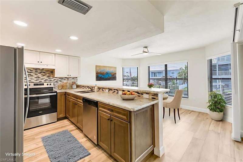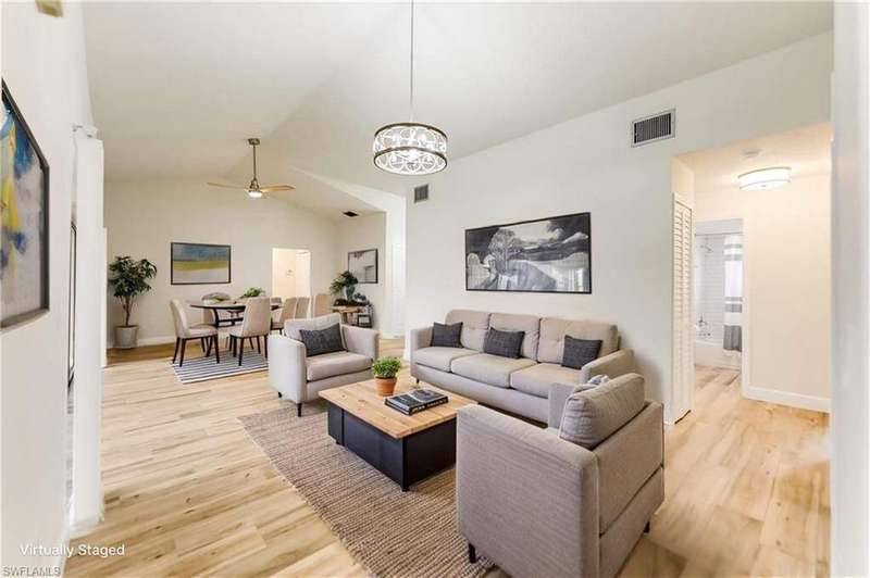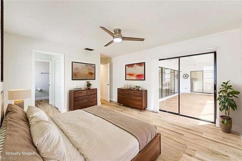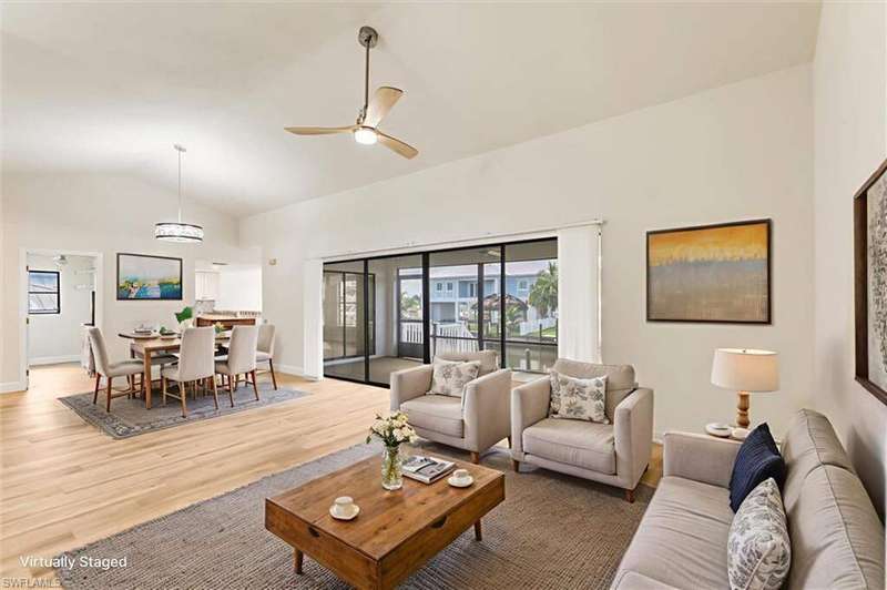 This renovated 3-bedroom, 2-bathroom home offers the ultimate Florida lifestyle with direct gulf access and room for a pool right on the water! Professionally remediated and remodeled after Hurricane Ian, the property sits high and dry, and remained undamaged through both storms Milton and Helene. Recent Updates Include: New roof- All-new kitchen with modern appliances- Updated bathrooms with contemporary finishes- Wood-look tile flooring throughout- New water heater- High-impact front and garage doors.Fresh interior and exterior paint New interior doors- Painted garage floor- New ceiling fans and light fixtures throughout. This spacious, move-in-ready home offers peace of mind with all major systems updated, and stunning water views just steps from your backyard. Furniture in photos has been virtually staged to help visualize the layout and potential. Don't miss this rare opportunity for waterfront living just moments from the open water!