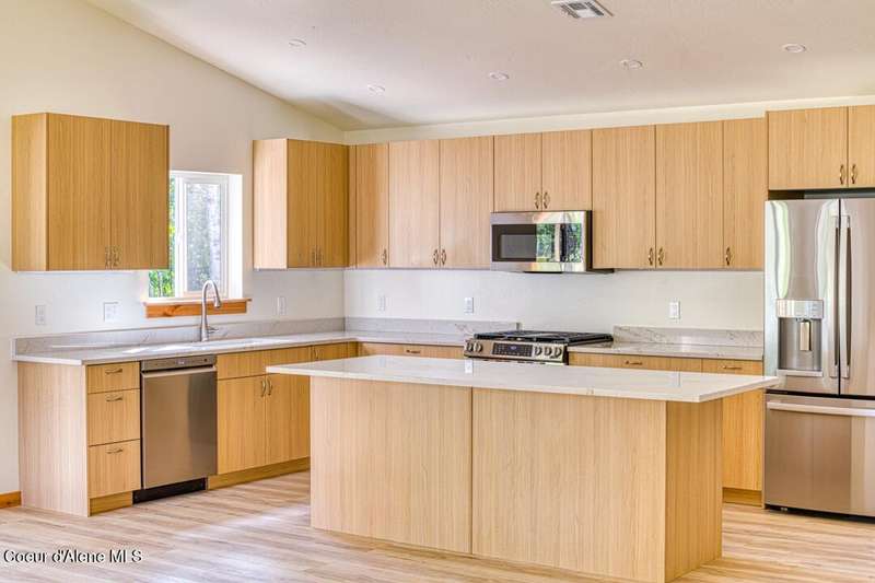 Outdoor adventure meets modern comfort in this beautiful home, ideally located on a serene lot just steps away from the Bay Trail and the Pend Oreille River. Enjoy the convenience of in-town living just minutes from Lake Pend Oreille and world-class skiing at Schweitzer Mountain. Inside, sun-drenched rooms with vaulted ceilings highlight the clean lines and chic, contemporary finishes. The gourmet kitchen features quartz counters, stainless steel appliances, upgraded cabinetry, and a walk-in pantry. Retreat to a spacious primary suite with a walk-in closet, double sinks, and a soaking tub/shower combo. Luxury vinyl plank flooring adds warmth and durability throughout, while plush carpet with extra padding in the bedrooms ensures comfort. Stay organized with spacious mud/laundry room complete w/ built-ins & utility sink ideal for storing your adventure gear. This is more than a home; it's a lifestyle.