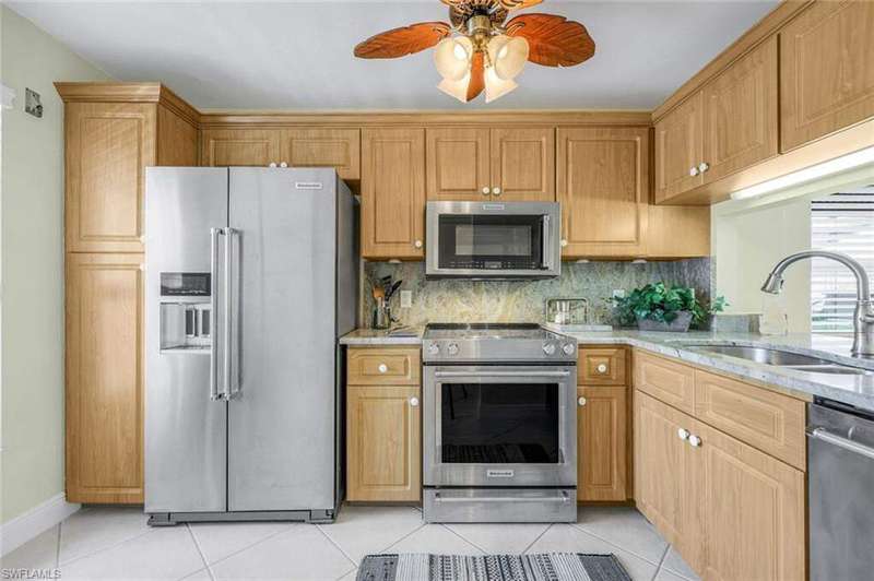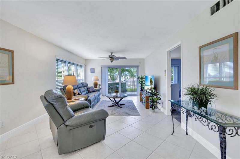 Enjoy serene canal views and close proximity to the beach from this light and airy 2-bedroom, 2-bathroom condo at the Moorings of Marco. Perfectly positioned at the end of a direct-access waterway, this residence offers the ultimate in island living-watch boats pass by from your oversized lanai while enjoying the tropical breeze. Inside, the open-concept layout features a spacious living area, impact-resistant windows and doors, neutral tile flooring, and an updated kitchen with granite countertops, stainless steel appliances, and ample cabinetry. The primary suite offers private lanai access, a walk-in closet, and a large en-suite bath with dual vanities. A full-size washer and dryer are included in-unit for added convenience. Community amenities include assigned covered parking, a sparkling pool, cabana area, bike storage, extra storage, car wash station, and more. Located just a short stroll to Caxambas Park & Marina and within a mile of dining and shopping, this is one of the best values for beach-area living on Marco Island. Whether you're seeking a vacation retreat, investment property, or full-time residence, this move-in ready condo is a must-see!