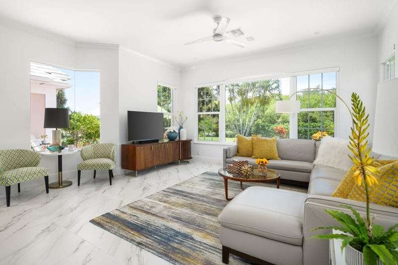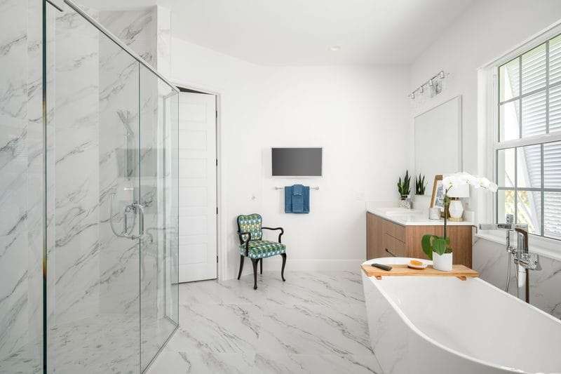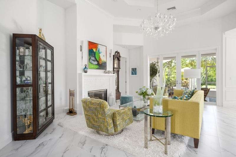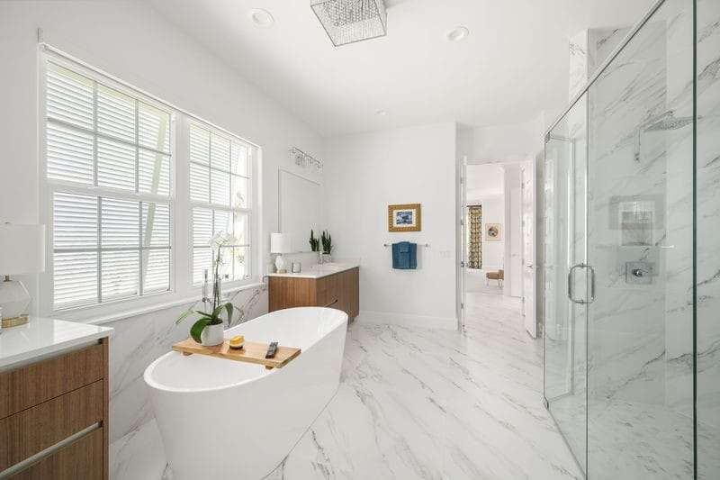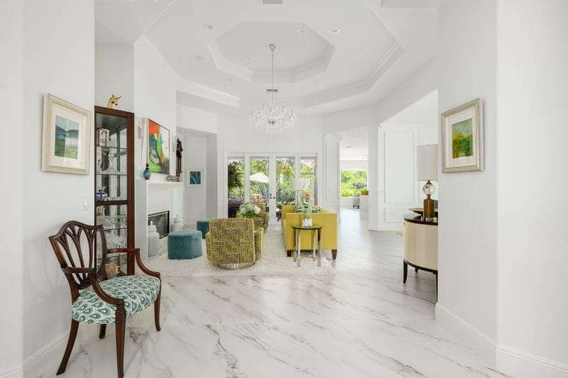 Luxurious Bermuda designed exterior & spacious modern interior boasts 14' high octagon tray ceiling in living room, wood burning FP & custom moldings. European inspired kitchen & baths, large 36x36 porcelain tile floors & walls. KitchenAid appliances 36 cooktop, French door bottom freezer, built-in oven/microwave, 36 hood & Bosch DW. Owner's suite, has 2 vanities, soaker tub, lg shower, walk-in-closets, custom shelving. Impact windows & storm shutters, Hurricane insulated garage door, whole house Generac generator, BBQ gas line, 2 A/C units, split A/C in garage & central vacuum.Rmszapprox