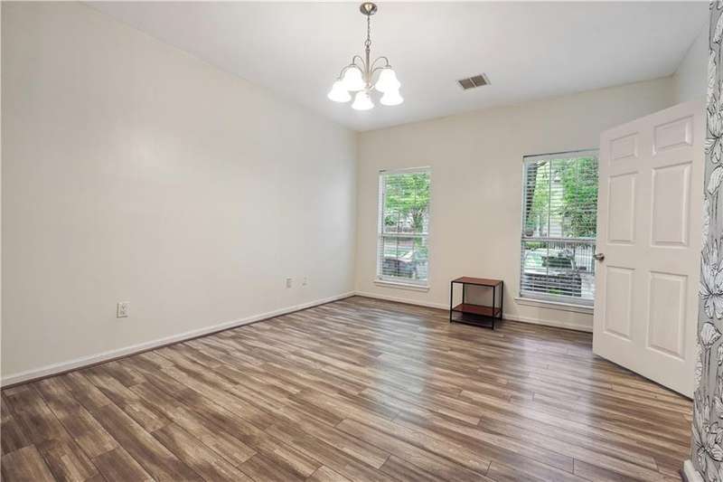 Practically giving it away! Fantastic super convenient Sandy Springs 2 bedroom / 2 bath, roommate floor plan condo with walk out covered porch in Sandy Springs. Easy access to I285, 400 or short drive into Buckhead or Roswell. Bottom floor easy walk up with 3 PARKING SPACES! (two in garage and one in front of unit) and 2 DEEDED STORAGE UNITS! Do I need to repeat that? Whats the value of three parking spots? Like $300k? Freshly renovated - new appliances, new dishwasher, stove and microwave, new flooring, new vanities, new faucets, new fixtures and new paint. Quiet peaceful low traffic complex. Easy access with no steps from garage. Fitness center, Club house, Gated.Super close to Lifetime Fitness, Whole Foods, Target and thousands of great restaurants. Marta stop at end of street. Tons of nightlife and activities! Come quickly, tour and buy it! Like dont wait til Saturday.