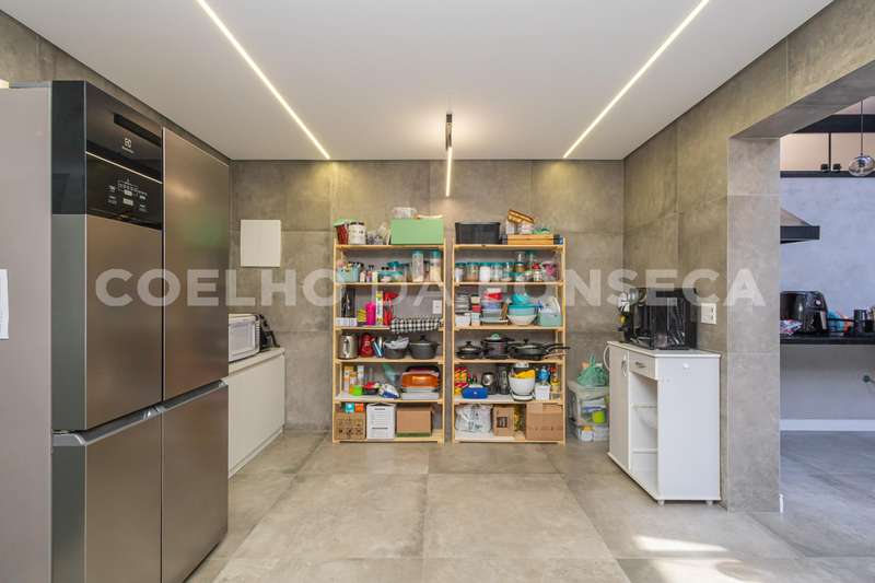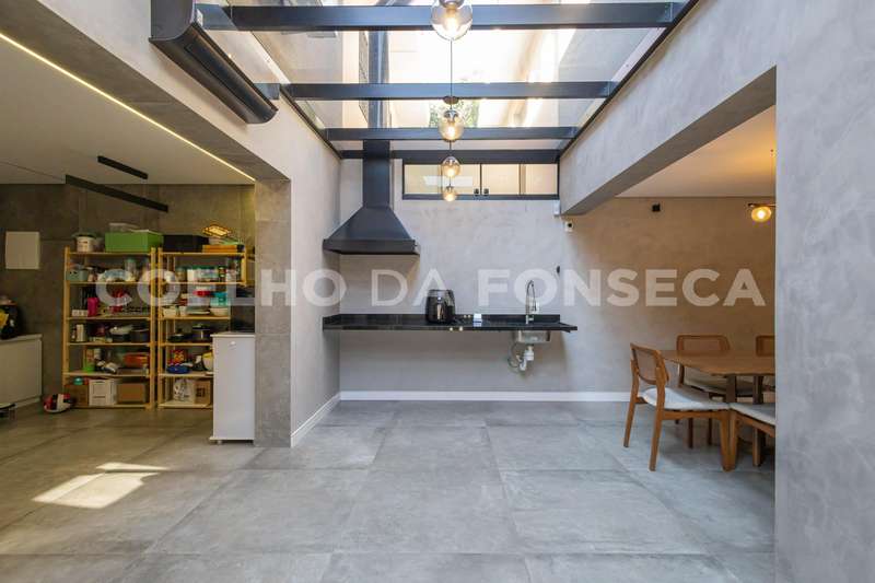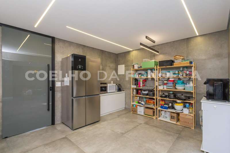 Integração da cozinha com a edícula aos fundos, área gourmet com churrasqueira e acesso em separado por corredor lateral. Extremamente funcional e bonita, ideal para quem gosta de receber.