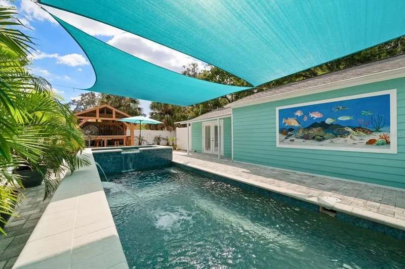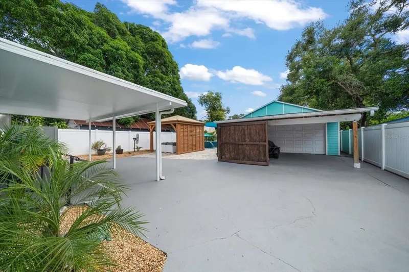 Step into the timeless elegance of this beautifully maintained 1925 Craftsman-style home, offering 2 bedrooms, 1.5 bathrooms, and the perfect blend of old Florida charm with modern updates. From the moment you arrive, you'll be captivated by the welcoming front porch and classic architectural details that make this home truly special. Enjoy a resort style backyard with a heated salt water pool and spa (2018), surrounded by a gorgeous paver deck, an outdoor shower, and a covered bar area ideal for grilling, dining, and unwinding with friends and family. The detached 2-car garage features an additional finished room perfect for a home office, gym, studio, or den. There's ample space to store a boat or RV, plus a separate carport for your extra toys. The entire backyard is enclosed with a 6-foot PVC privacy fence, creating your own private retreat. Located just minutes from downtown Clearwater, this is a rare opportunity to own a unique home with character, functionality, and incredible outdoor living. Don’t miss it!