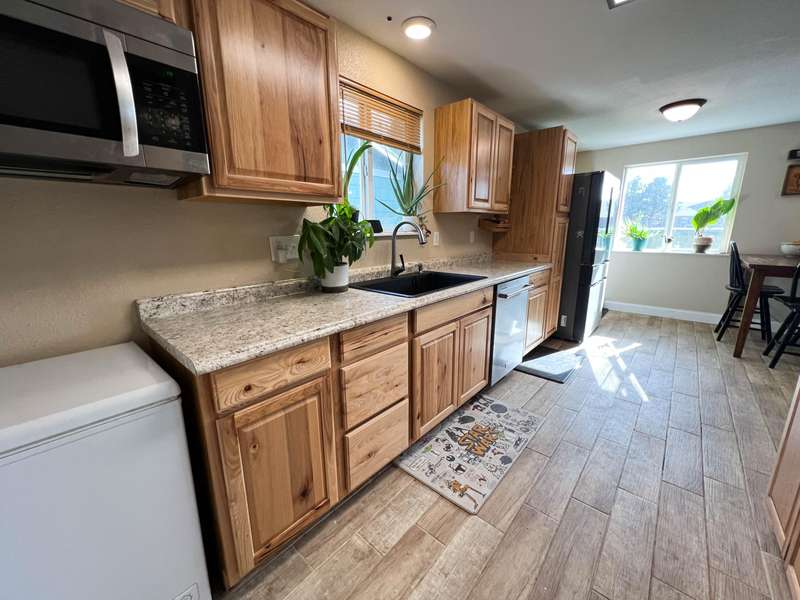 Welcome to this charming, cozy home featuring a comfortable open layout and modern updates throughout. The kitchen has been updated and open to main living area with stylish tile flooring. This home offers 3 bedrooms and 2 full baths, including a primary suite with walk in closet and private bathroom. Has a large fully fenced backyard complete with a garden area, flower boxes, and patio-ideal for relaxing or entertaining. Located in a quiet established neighborhood, this home is conveniently close to shopping, parks, schools and restaurants. Don't miss the chance to make this your home.