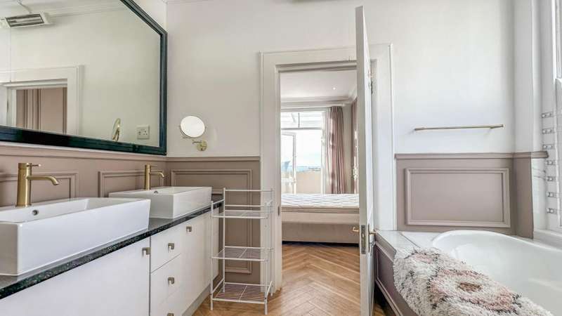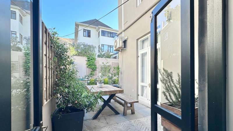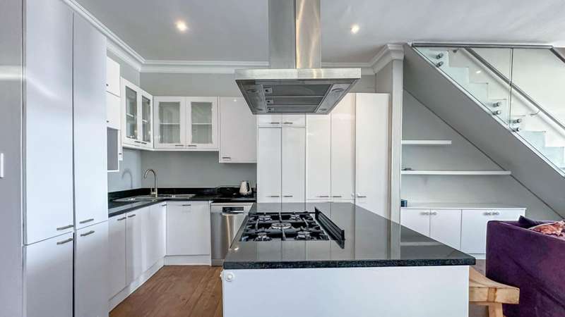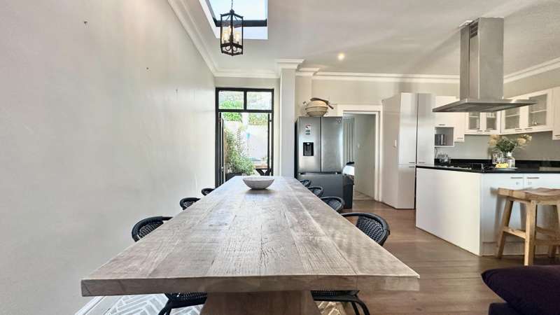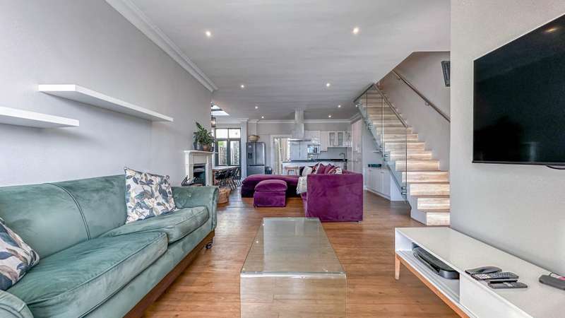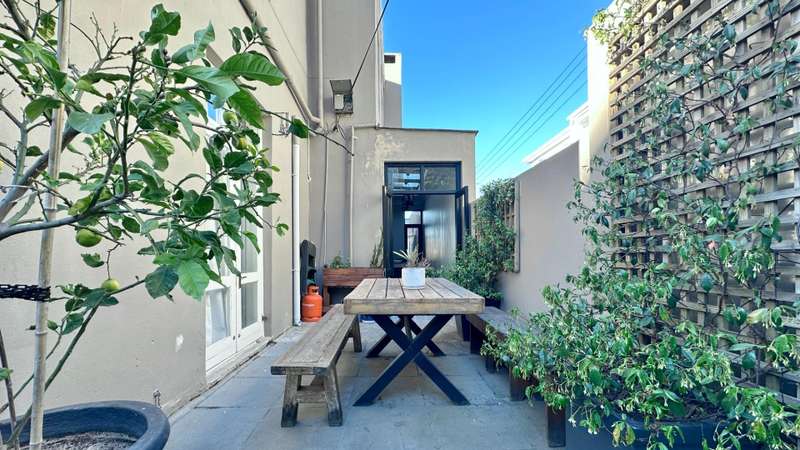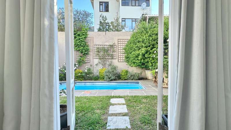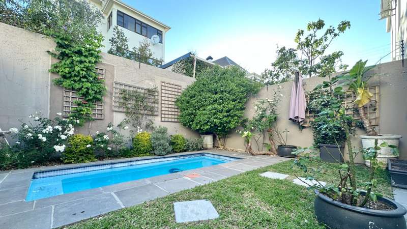 Green Point Townhouse (Sectional Title) Tucked away in one of Green Point?ÇÖs most sought-after pockets, just moments from Giovanni?ÇÖs, Woolworths, Hudsons, and the vibrant Main Road caf?? culture, this townhouse captures the essence of Cape Town living ?Çö a balance of city buzz and tranquil living. Designed around inviting outdoor spaces, the home flows effortlessly from the open-plan living areas to a covered patio, poolside deck, and lush garden?Çöperfect for entertaining family and friends. The open-plan kitchen, complete with generous counter space, seamlessly connects with the dining and lounge areas, where French doors open to the terrace and garden, blurring the line between indoors and out. The ground floor also includes a well-sized en-suite bedroom that opens to a quiet courtyard and the garden ?Çö perfect for guests or multi-generational living. Upstairs, two distinct bedrooms await ?Çö one calm and serene, the other vibrant and full of personality. Both offer air-conditioning and lovely outlooks. The north-facing main suite is a highlight, offering a private, light-filled space that opens to an expansive balcony with views toward the Cape Town Stadium. Both upstairs bedrooms include ample built-in cupboards and their own stylish full bathrooms. The covered double-carport with storage space in front is a rare luxury. A bonus feature: the property benefits from a solar system (with a monthly cost of R1,750), ensuring year-round cost efficiency.