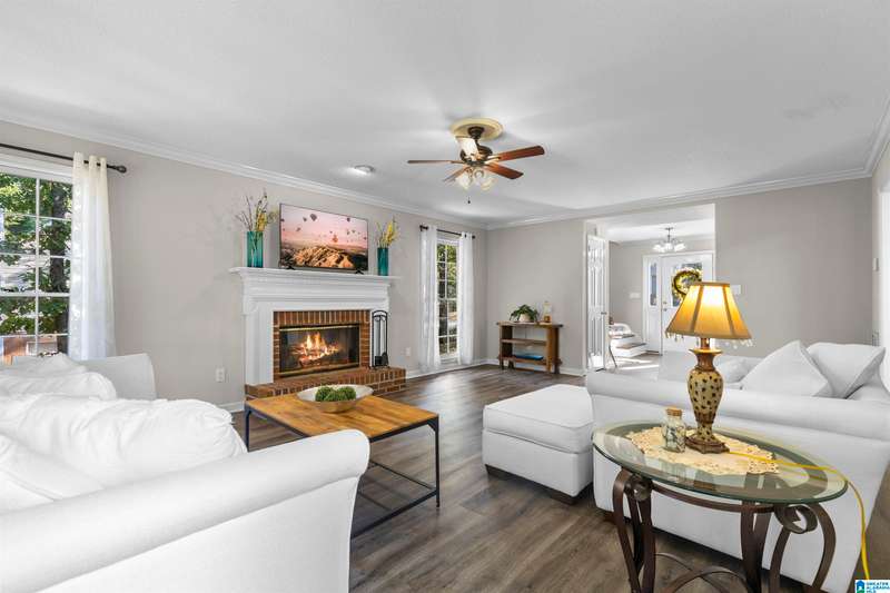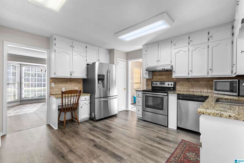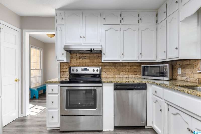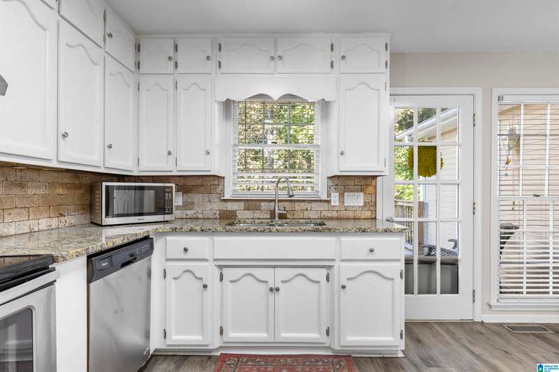 OPEN HOUSE SUN 2-4. This move-in ready 3-bedroom home offers incredible value in the heart of Hoover, AL - zoned for Spain Park High School. Featuring a spacious finished daylight basement and a main-level garage for ultimate convenience, this home is designed for comfortable living. Enjoy the light-filled interior with neutral tones throughout, creating a warm and inviting atmosphere. The kitchen boasts abundant granite counter space and flows seamlessly into the formal dining room—perfect for entertaining. Step outside to your private back deck and patio, ideal for relaxing or hosting guests. The finished basement expands your living space with a built-in desk, wet bar, and double French doors that open to the backyard—plus plenty of storage options. Recent updates include a new roof (2018) and hot water heater (2024). Conveniently located with easy access to both Hwy 280 and Hwy 31. Don’t miss this opportunity—schedule your showing today and make this fantastic home yours!