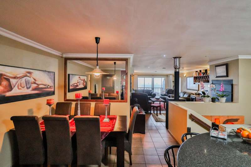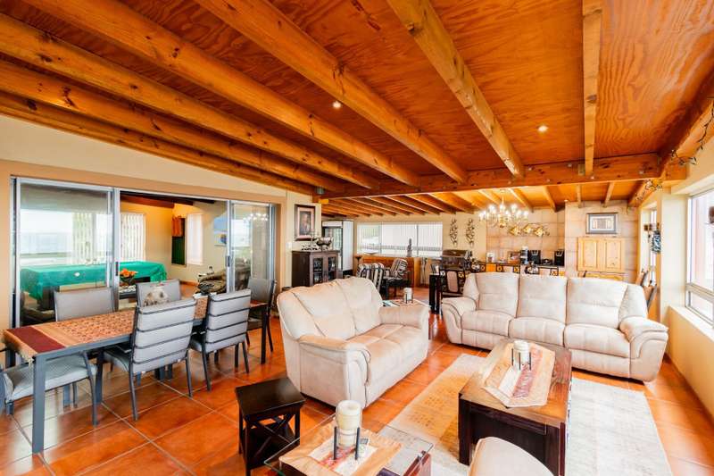 Joint Mandate - Nestled atop the beautiful sunny seas, this entertainer sea view property offers an unrivalled retreat for those seeking the pinnacle of luxury coastal living. Step into an exquisitely designed residence where wide windows and sliding doors, frame breathtaking views of the azure sea and endless horizon. The open-plan living areas seamlessly blend indoor and outdoor spaces, allowing sea breezes to caress your senses. The top floor welcomes you to the modern open plan kitchen, dining room, study, lounge-braai area and various entertainment rooms. The main en-suite bedroom is also situated on the top floor level. Transport yourself to a charming cozy braai room, tv lounge and open living area. Don?ÇÖt forget to enjoy a glass of wine in the wine cellar. This property has got an easy assessable studio flat with kitchenette which is a great advantage. Downstairs you will be welcomed to two sea facing bedrooms, each bedroom is a haven of comfort and relaxation, while the bathrooms evoke a sense of indulgence. The laundry room and three garages can be accessed form downstairs. This property has a 5 KW inverter and your fur babies are welcome. Book your appointment today to this exclusive property.